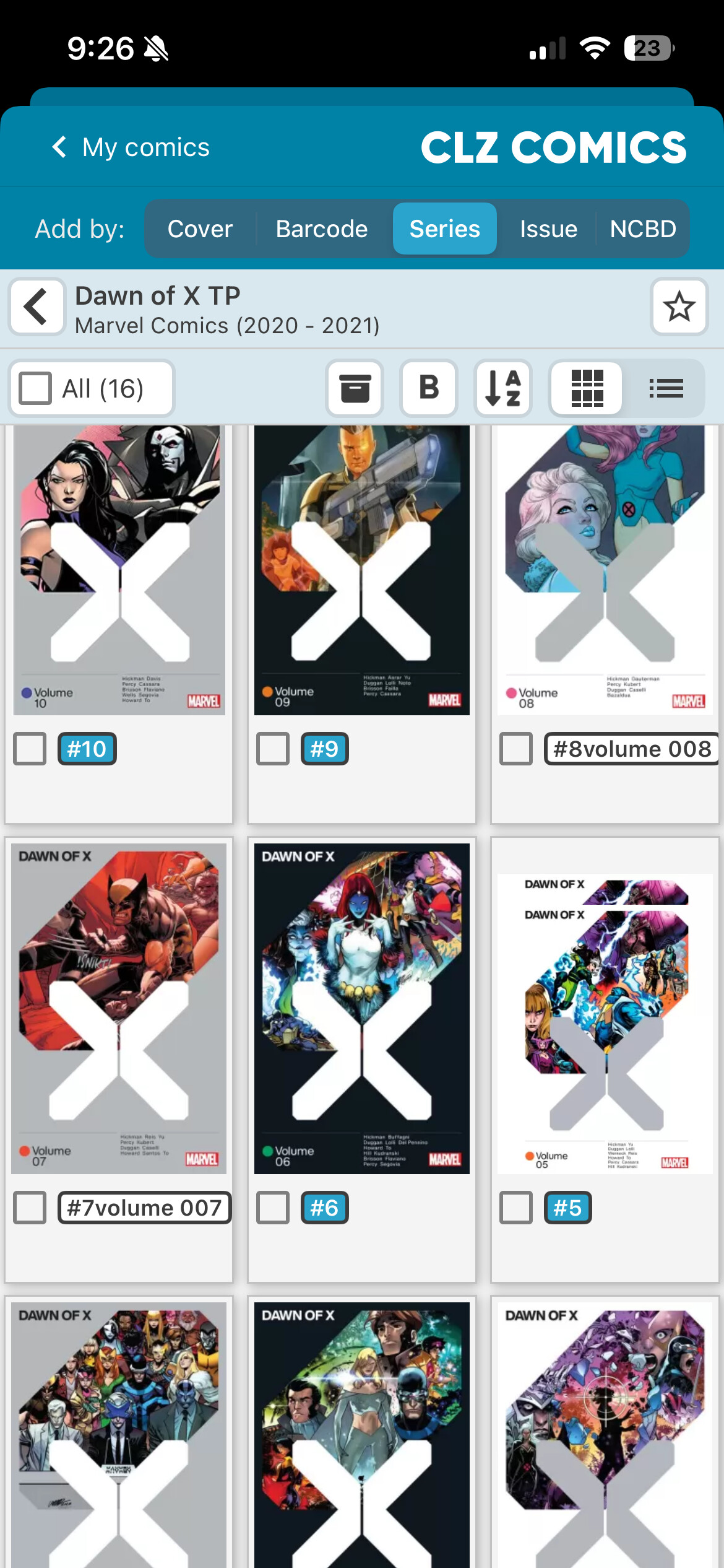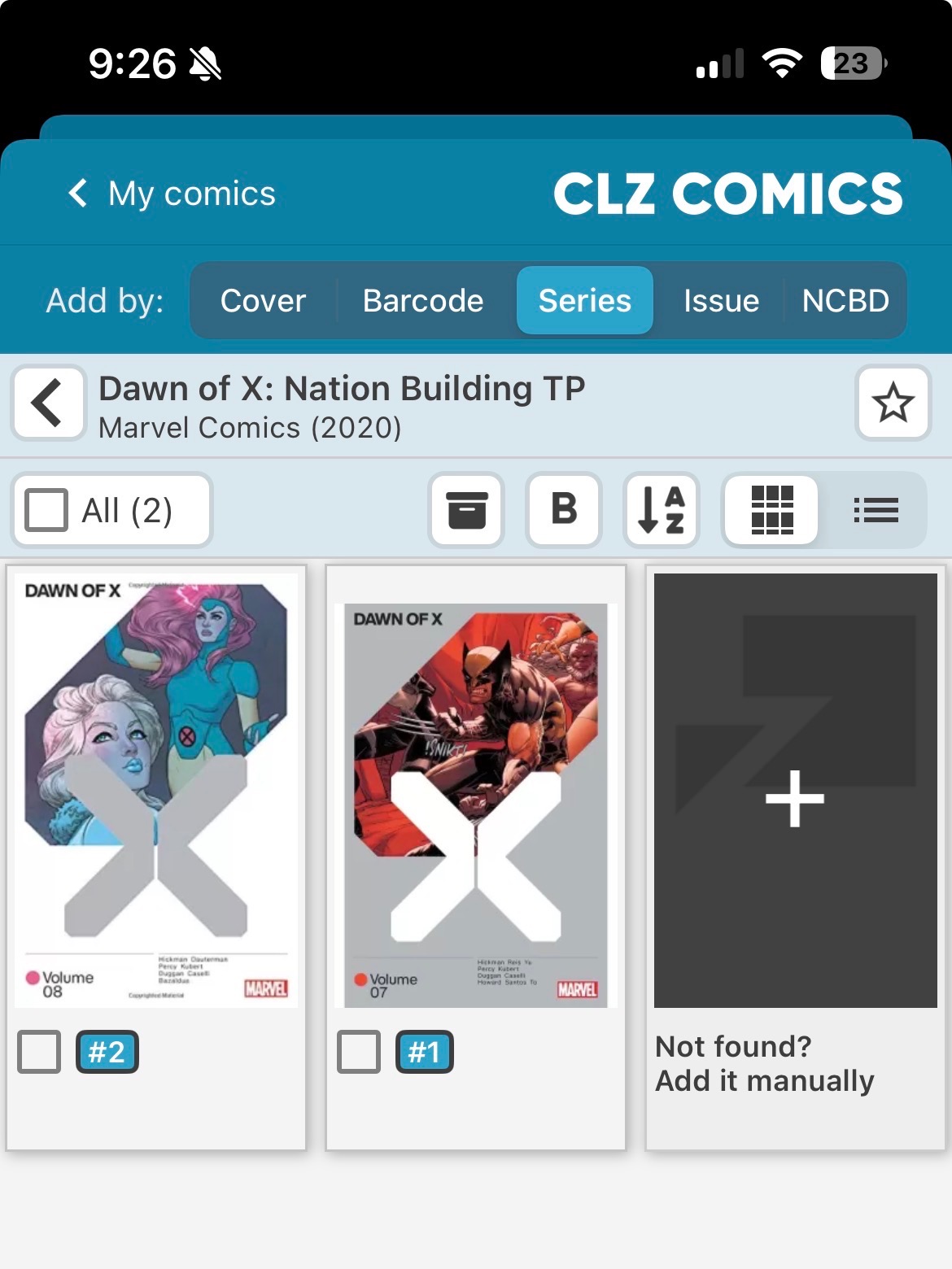 Hi. Volumes 7 and 8 in the core title “Dawn of X TP” are also appearing under the title “Dawn of X: Nation Building TP”. Bar code scanning finds them as the 2 “Nation” volumes as shown in these pics from my app but I don’t think they should be separate. Can you straighten this out? I have all the books and am happy to help in any way needed. Thanks!
