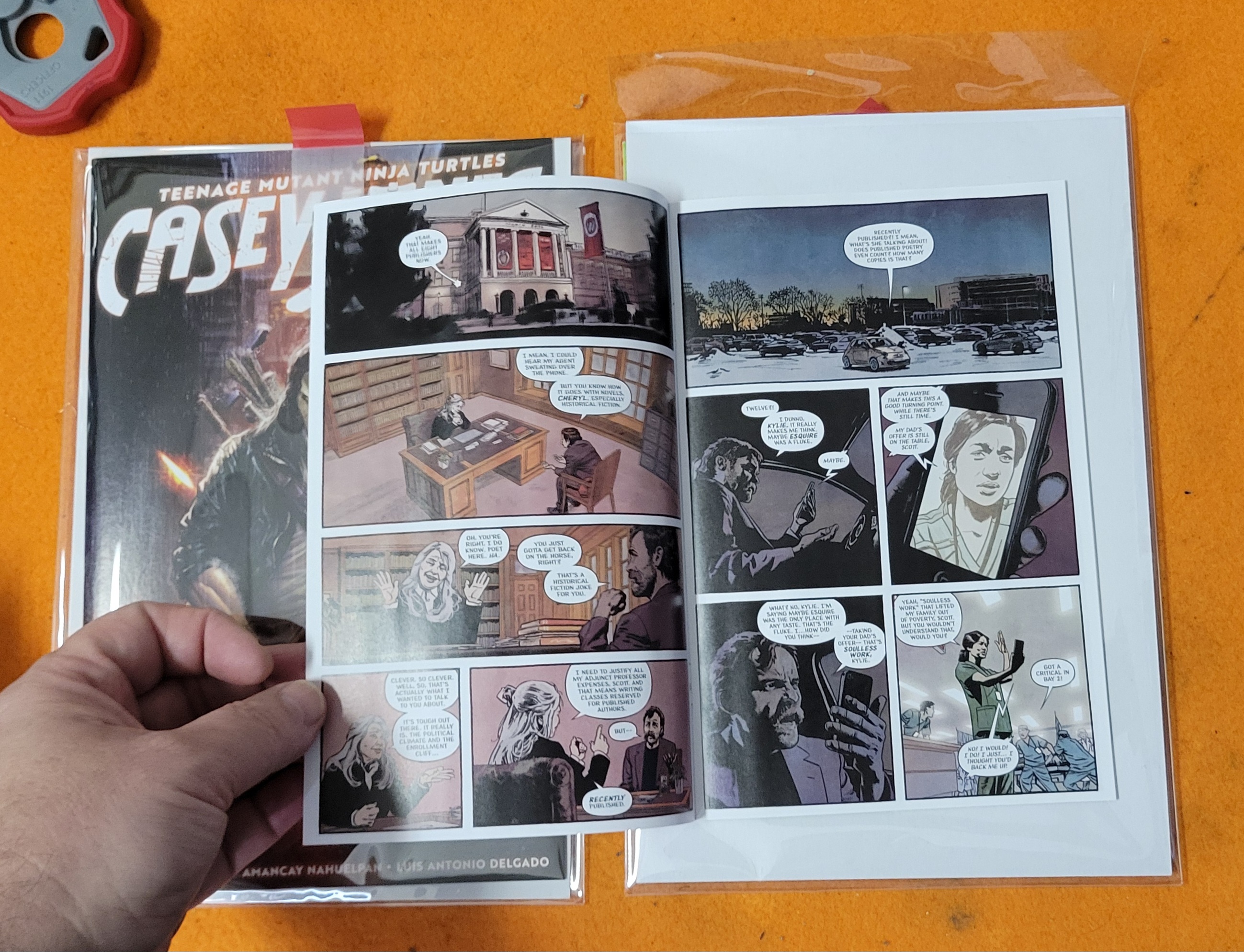 Small ashcan size, and color interiors. I have attached a photo of it next to a Casey Jones I picked up, along with photos of the copyright (stating “ashcan”), and more credits in case you want to add those.