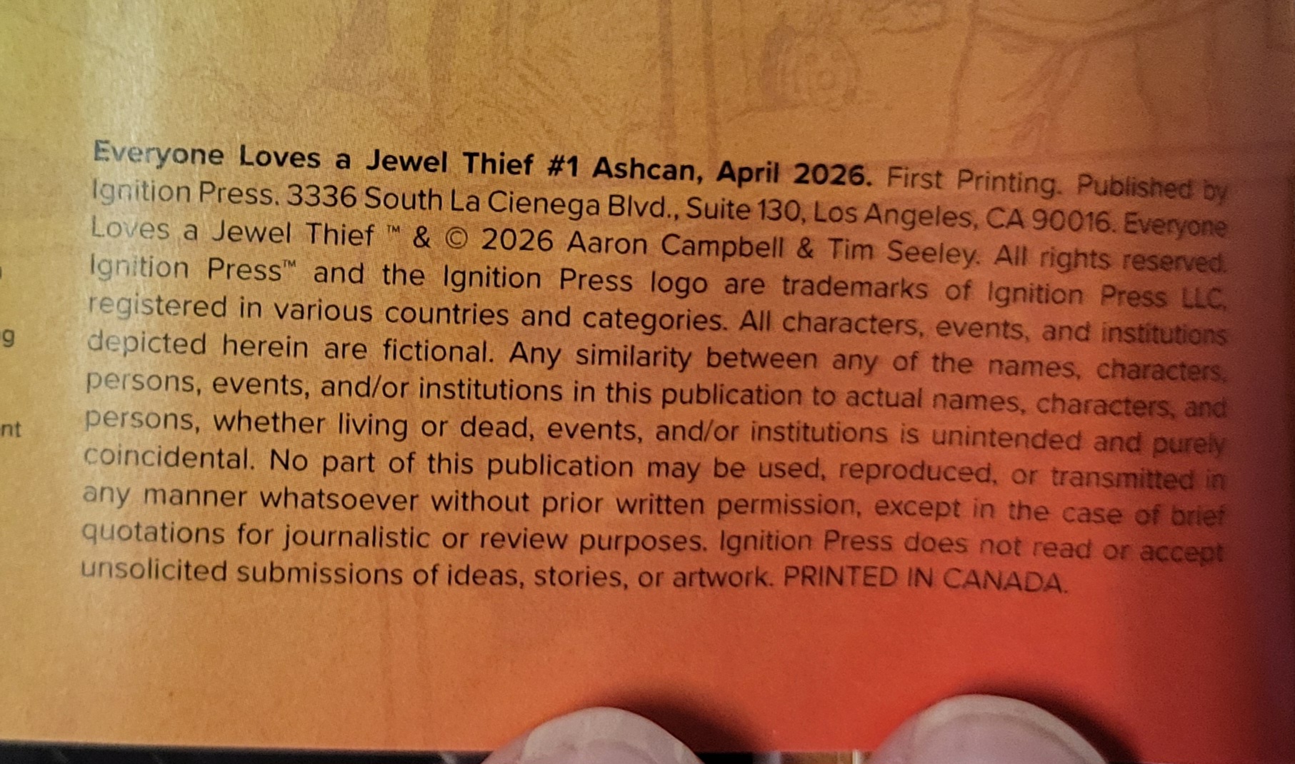 I don’t know if you would put this or not. The publishers of Everyone Loves a Jewel Thief have an ashcan of #1 that is for sale on their website, and they are selling it at Cons.