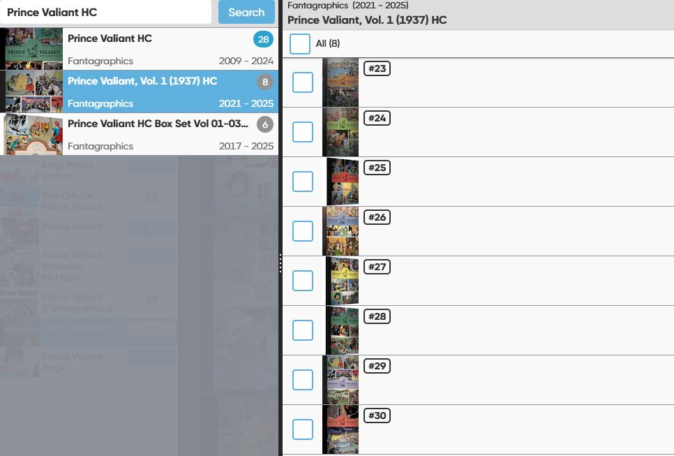 The latest 2 volumes of the Fantagraphics HC reprinting of Prince Valiant are not in Core yet