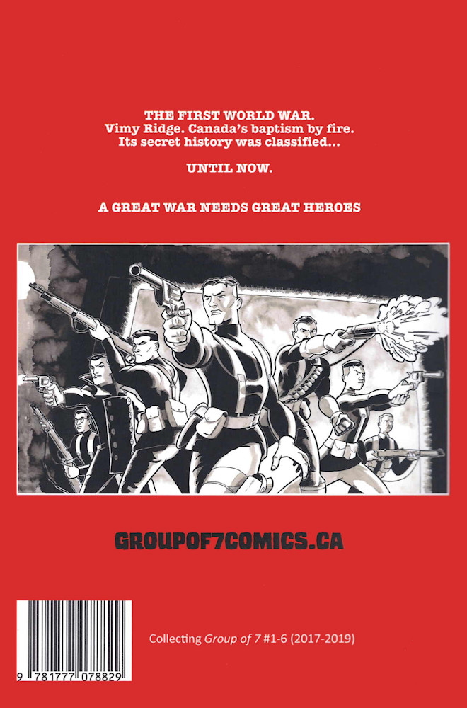 “Expanded edition of the Group of 7: A Most Secret Tale graphic novel (GN), collecting Group of 7 Comics issues #1-6 with updated art and bonus content. Soft cover. 6 inches x 9 inches. Approximately 180 pages. Black and white interiors. Released September 2023.”