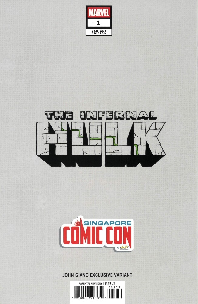There’s a “John Giang Green Monster Edition” to Infernal Hulk #1 (similar to #1K). Barcode 75960621361000122. Limited to 500.