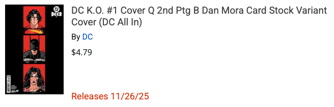 [Added] MISSING: DC K.O. #1 Cover Q 2nd Ptg B Dan Mora Card Stock Variant