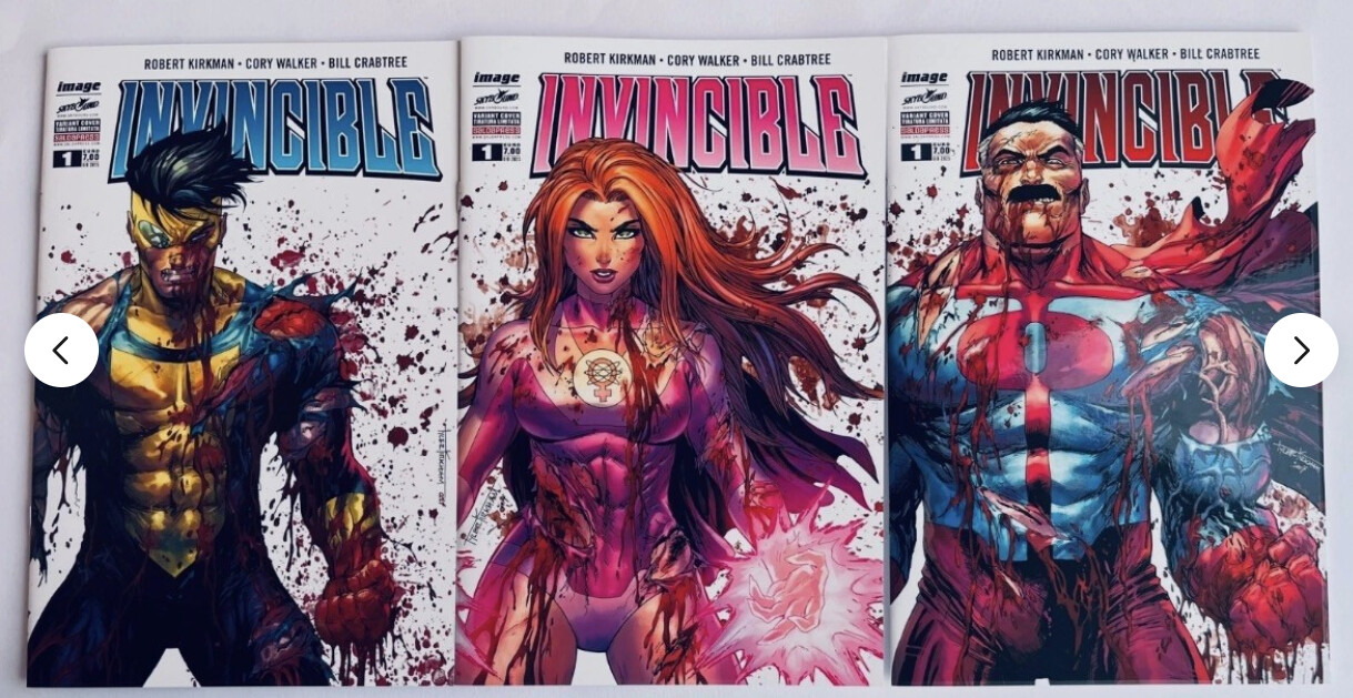 Tyler Kirkham battle damaged Invincible set from Salda Press . Embossed covers