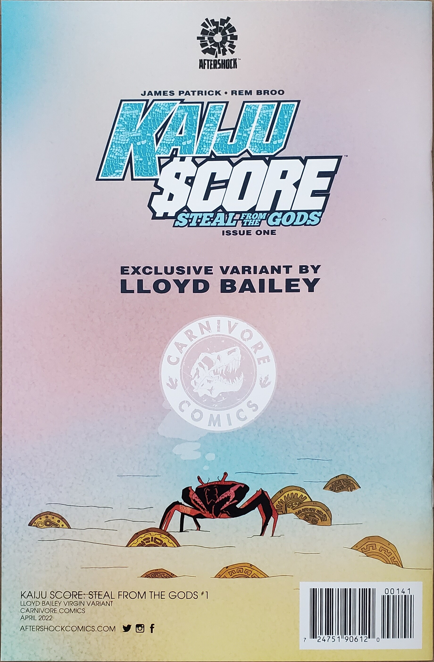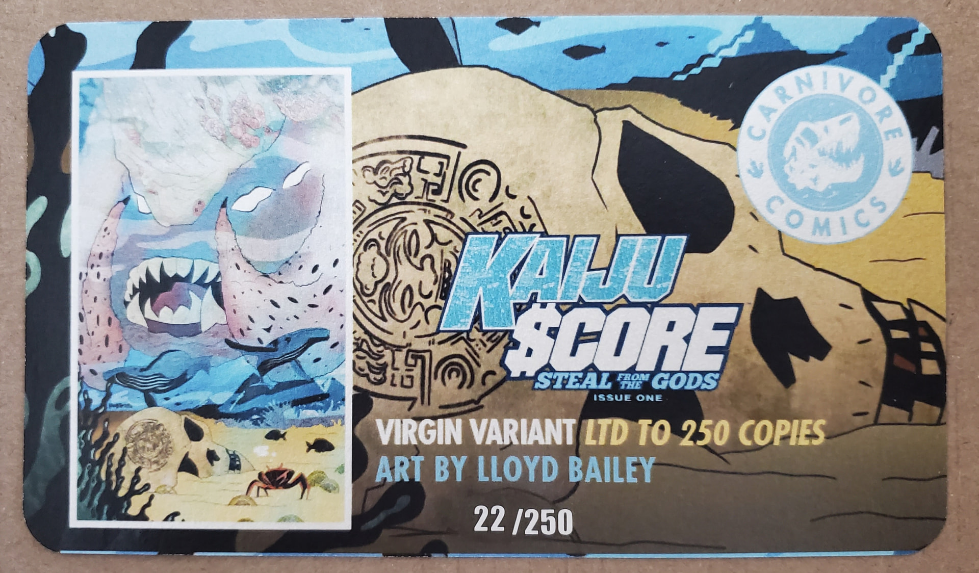 Missing this variant of Kaiju Score: Steal From The God’s #1. It’s limited to 250 copies. Cover artist is Lloyd Bailey. It’s a Carnivore Comics exclusive. I’ve included the back cover and COA.