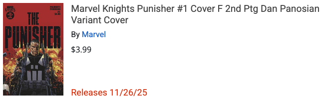 [Added] MISSING: Marvel Knights Punisher #1 2nd Ptg Dan Panosian Variant Cover