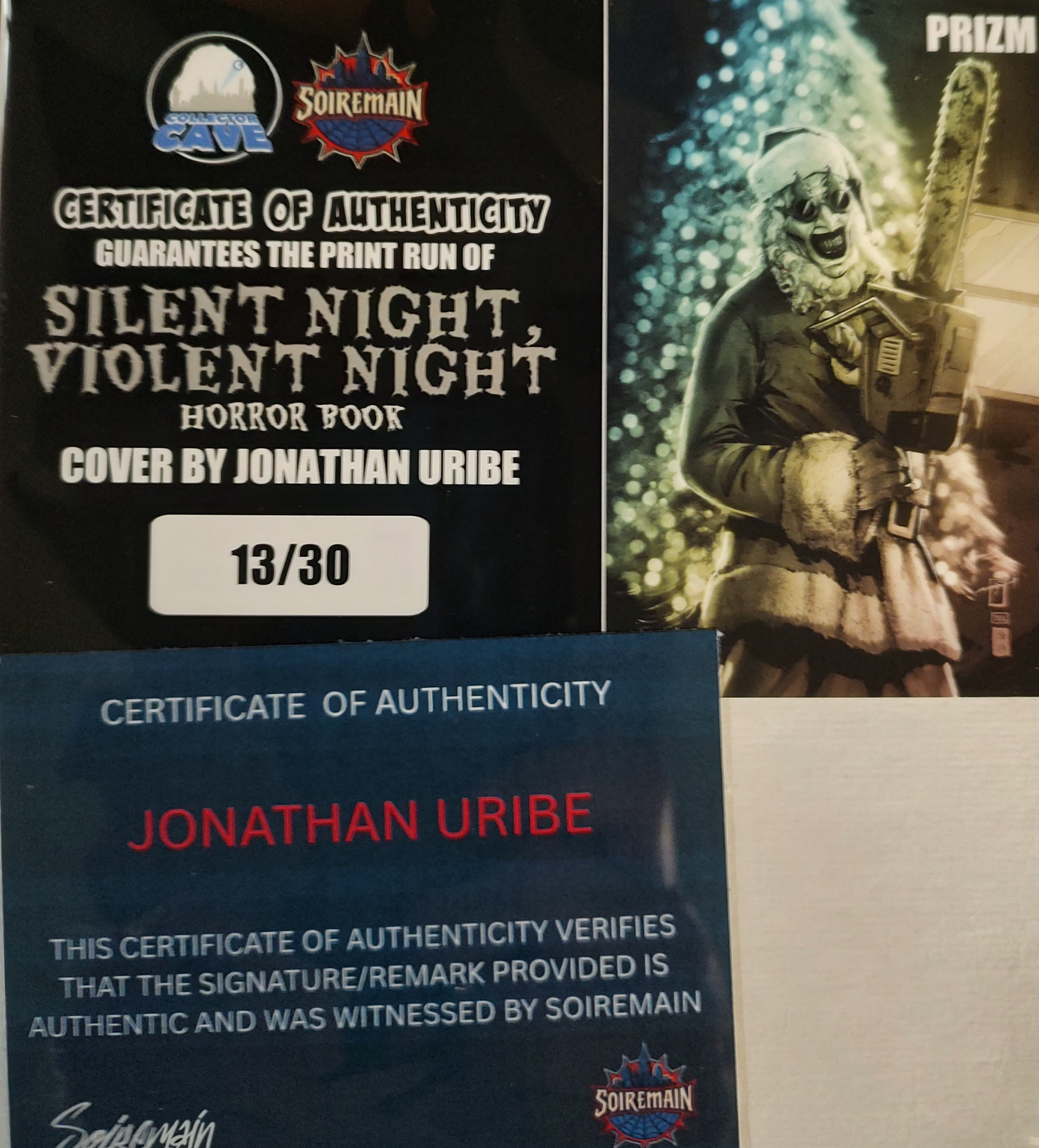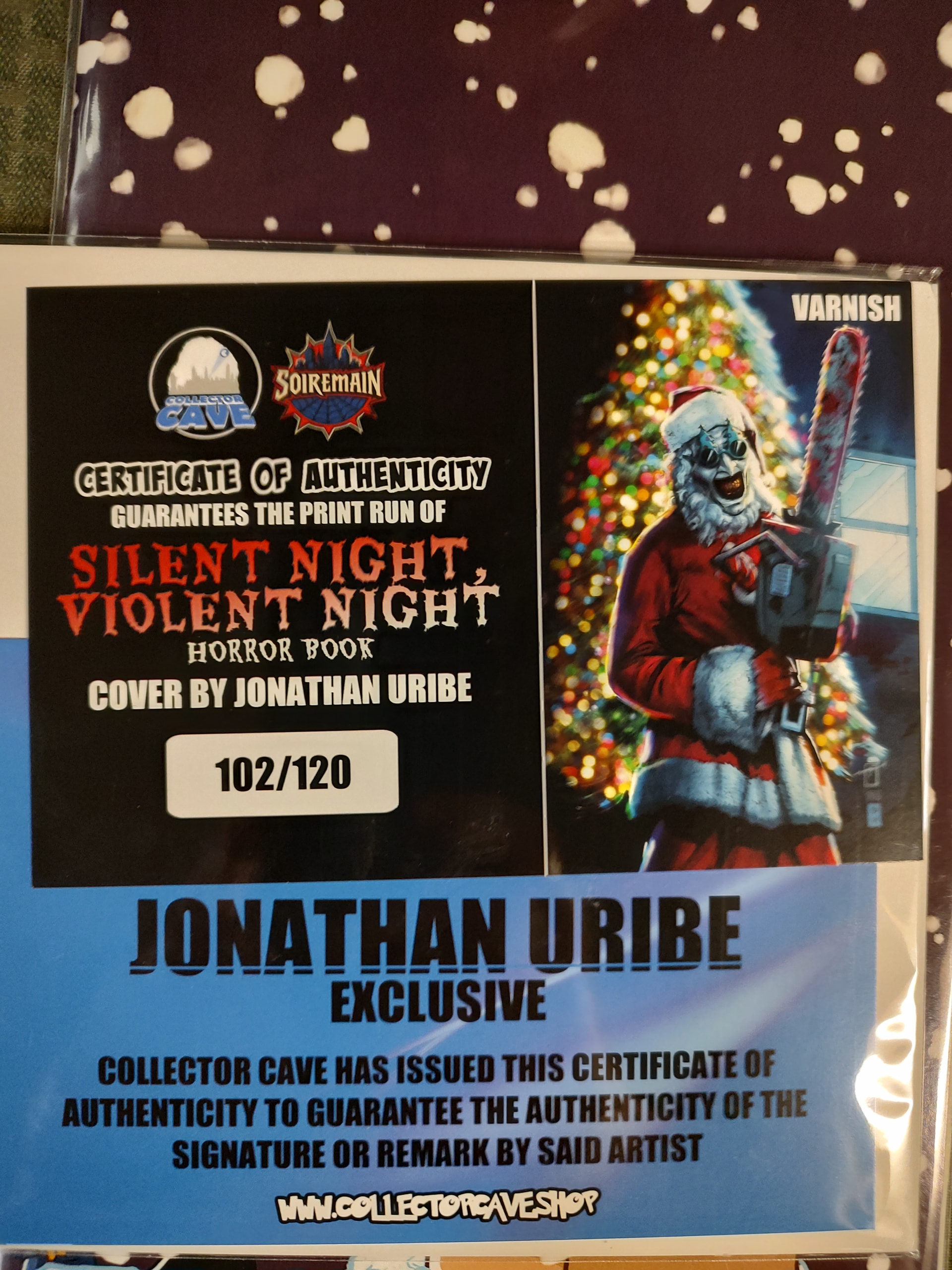 Please add Silent Night, Violent Night Horror BookTerrifier Santa spot varnish cover by Jonathan Uribe Ltd 120