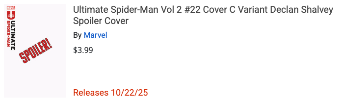 [Added] MISSING: Ultimate Spider-Man Vol 2 #22 Variant Declan Shalvey Spoiler Cover