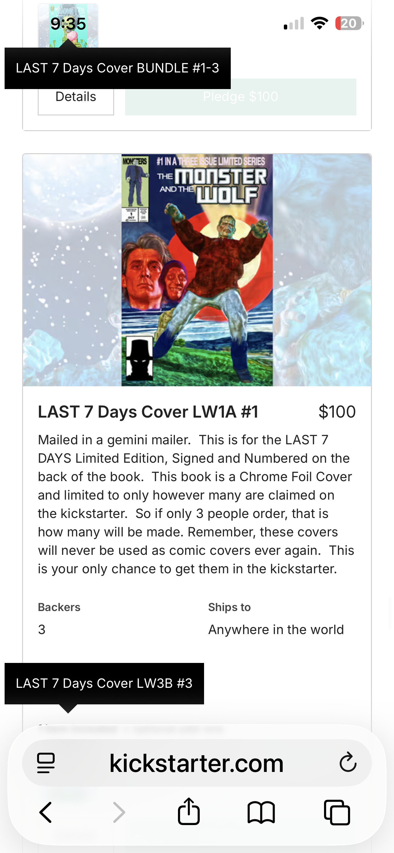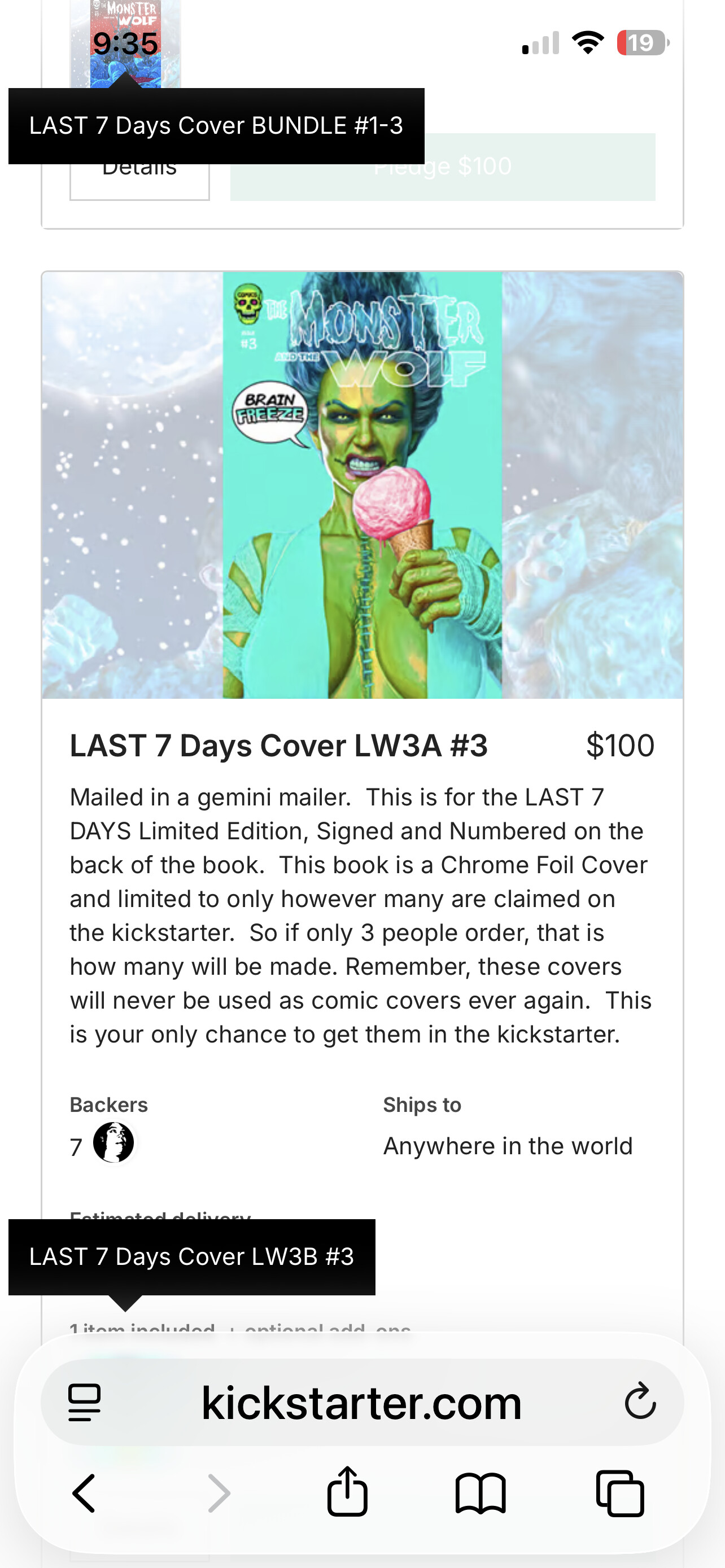 For the rest of the Last 7 Days (LW), which you are missing most of, i will be providing pictures AND assigning variant letters, using what you have already done. To facilitate that, first I want you to re-assign 1M to 1K. This is the “Lady Frankenstein” exclusive Foil variant, lim to 130. I will reassign 1K, when I get to the 3Dimensional covers.