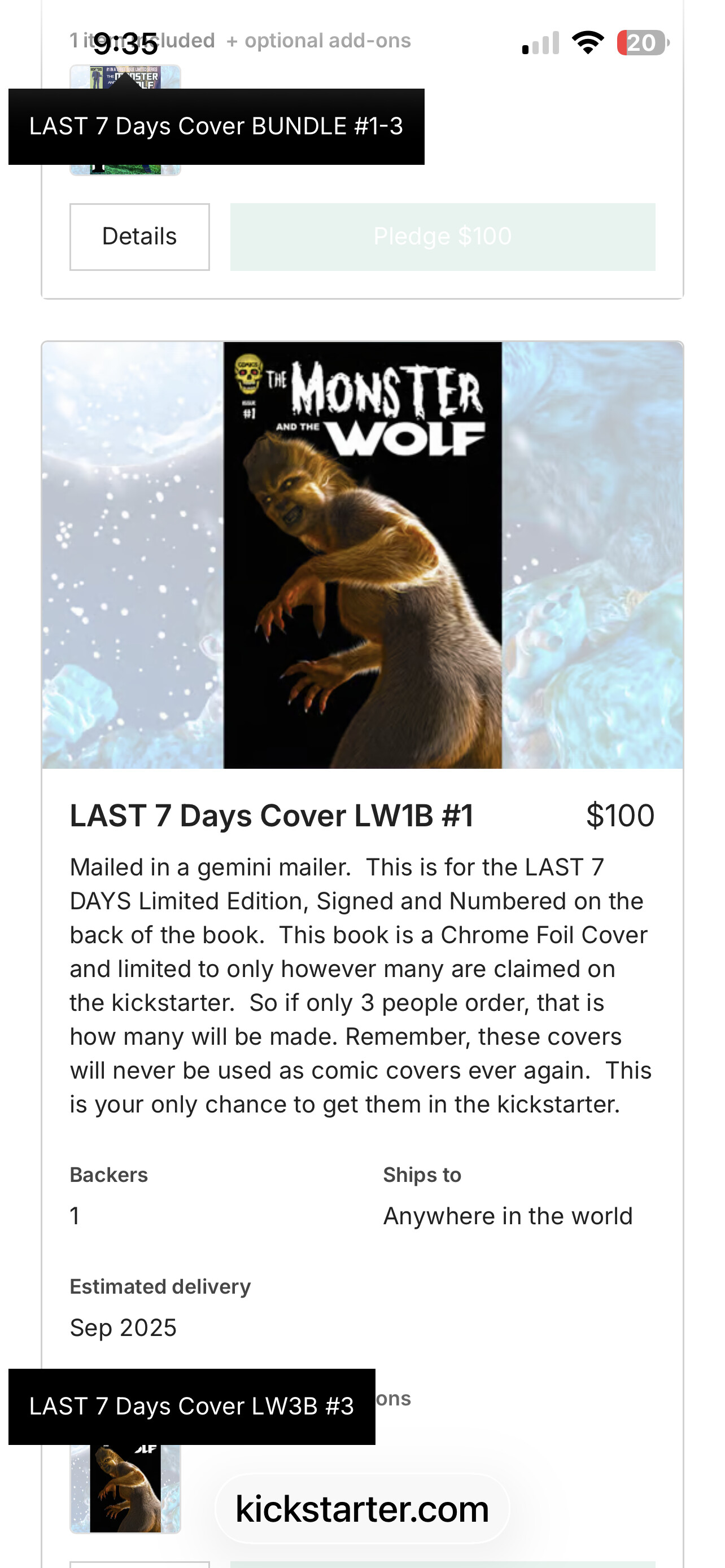 I am here to make corrections and set the record straight on this Kickstarter. This will be a long post, so hold on to your hats.. I have worked out how to assign variant letters to most closely match the system used in the Kickstarter. Also I will be going through this according to the categories to ensure the assignments.. The groupings are: 1) Basic Covers, 2) Black Friday Covers (MATW), 3) Last 7 Days (LW), which includes the Last 7 Days Bundle, 4) 3D Covers, 5) Mystery Stretch Metal Covers (M), and 6) Rewards.