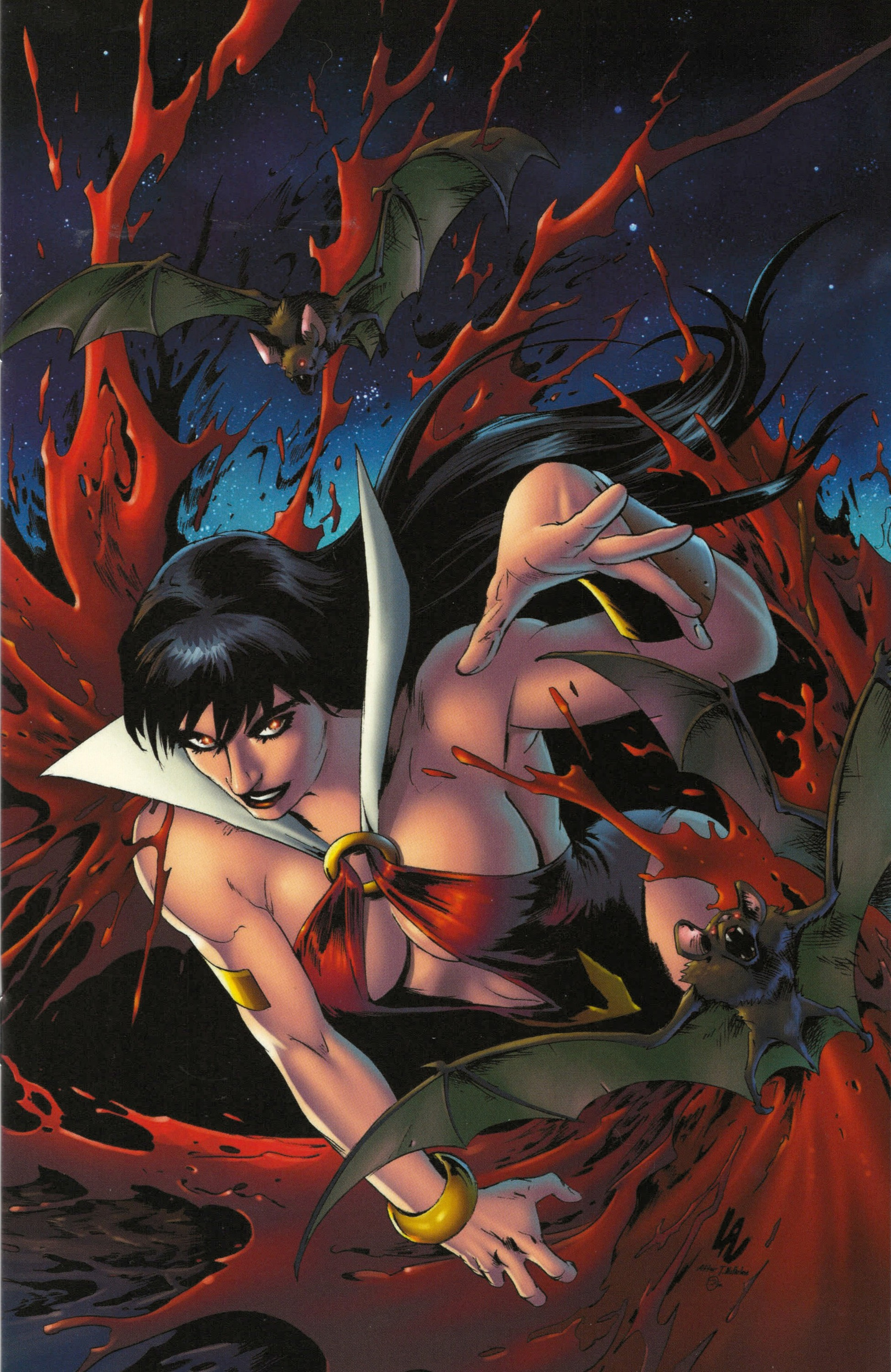 Here are 3 more Vampirella #8 Blind Bag covers. According to the bar code are, these are covers: R, V, & W. Just FYI, other than stating the letter of the cover in the bar code area, the back covers are identical, but I just scanned in one. I don’t know the artist because it isn’t clear on the credits are, not clear to me anyway.