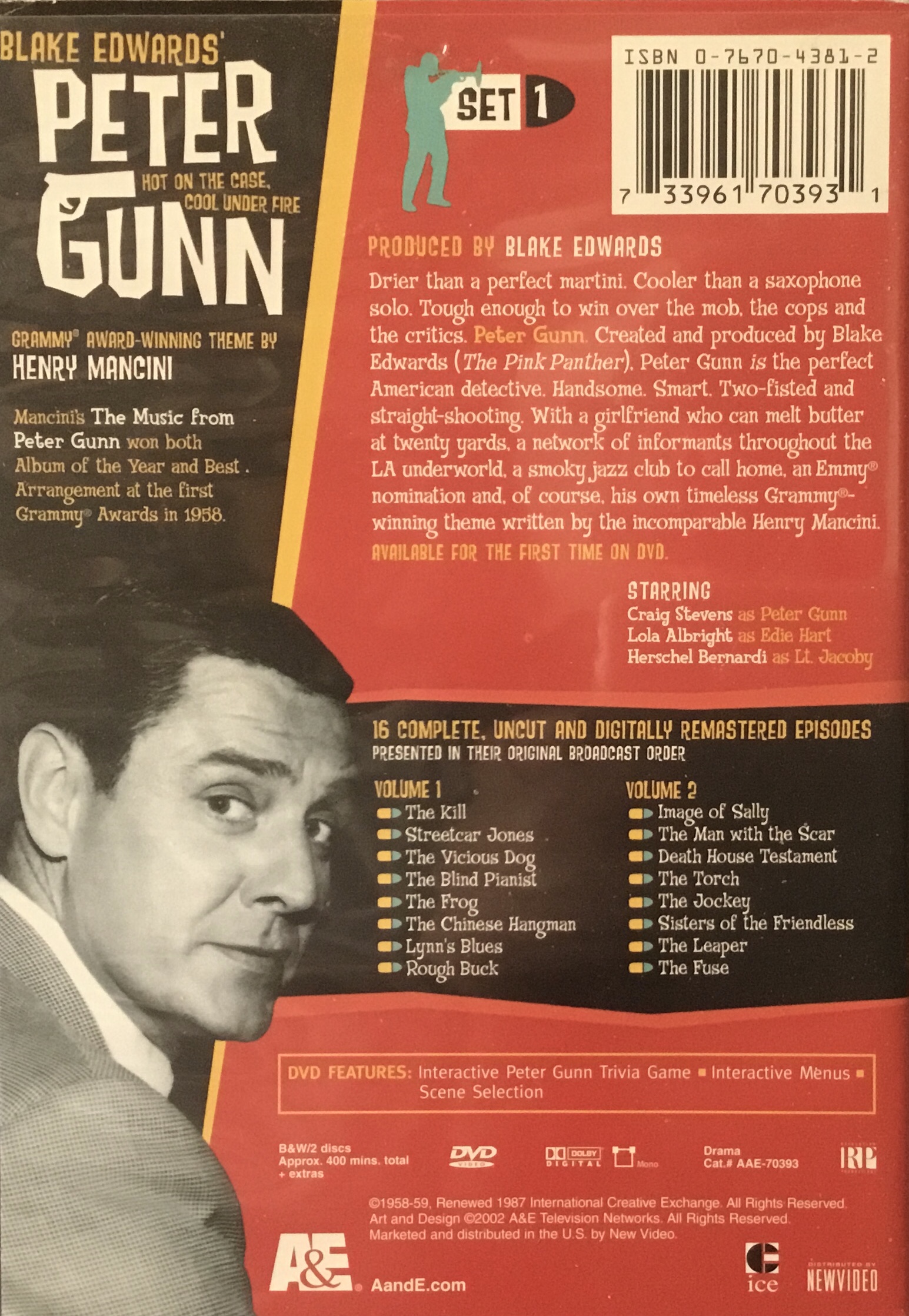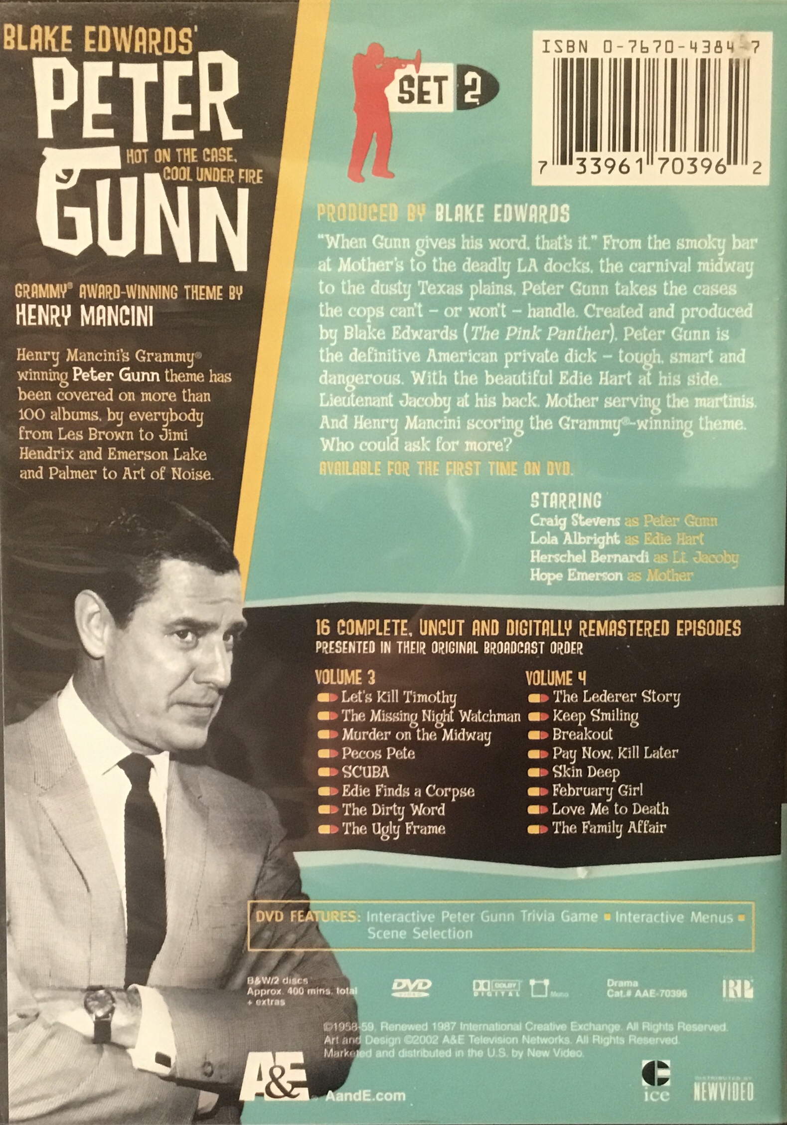 For your two Peter Gunn volumes #1 (733961703931) and #2 (733961703962) the episodes are missing. Here they are off the backs of my scans of the two volumes: