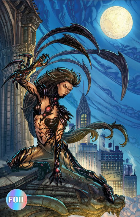 Witchblade #19 Cover art by Chris Marchman CONNECTING COVER TO The Darkness #4 Cover A Virgin Foil Limited to 500 Releases 3/18/26 ABOUT Witchblade #19: Sara Pezzini probably has the worst hangover in human history - and the mysterious, bloody corpse...