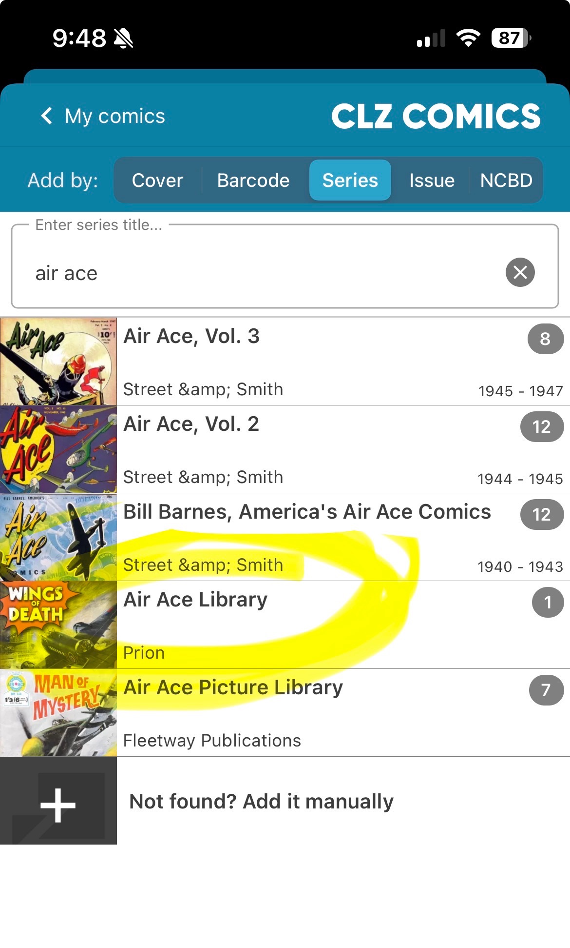 Hi. Can you add the collection “Aces High” to the ‘Air Ace Library’ title in core? Published by Prion in 2009, it precedes the existing “Wings of Death” core entry which was published in 2010. I do not believe there have been any other collections after these 2. Happy to provide any additional details if needed. Thanks.