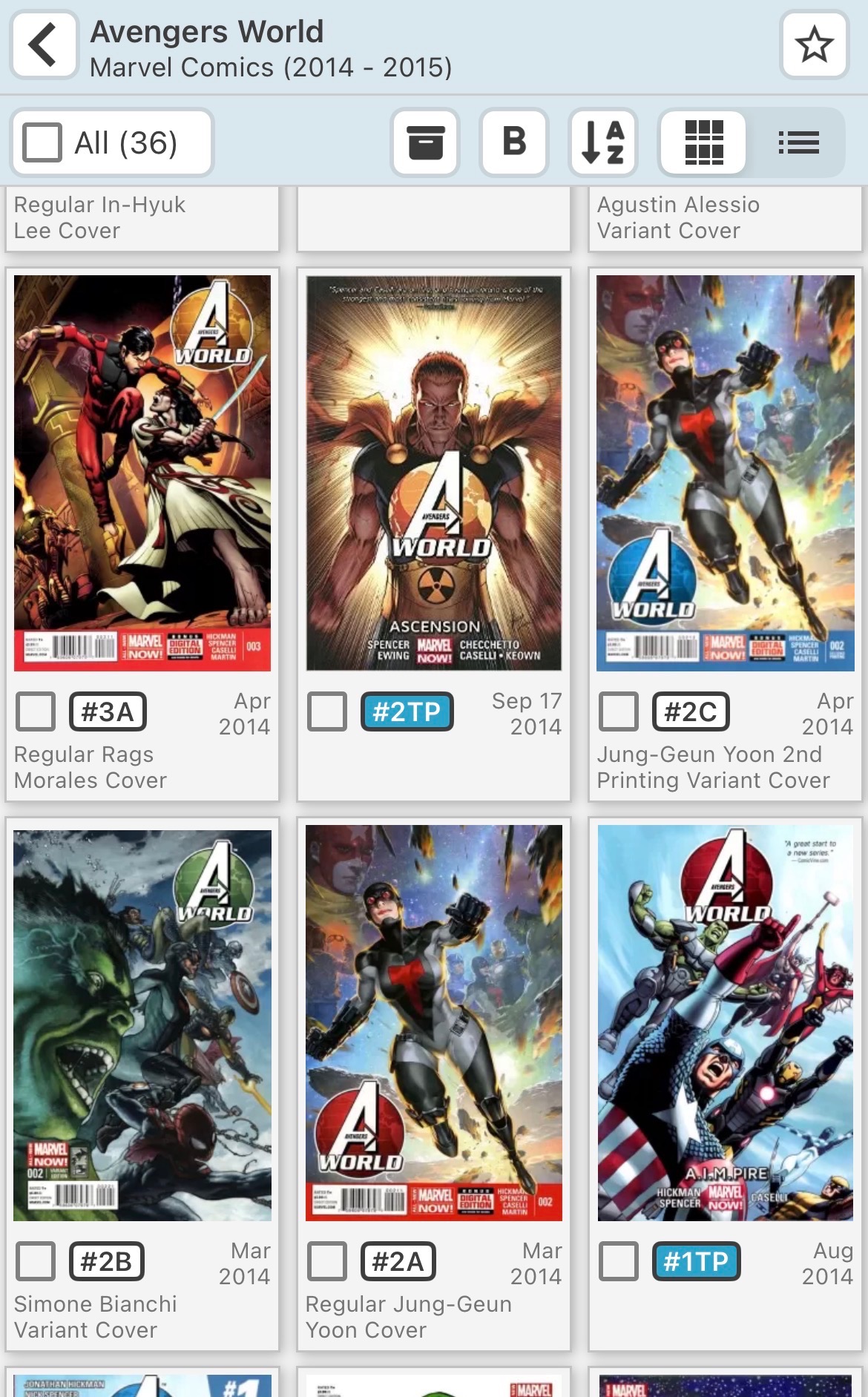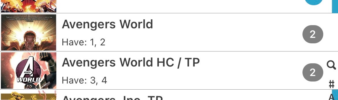 Hi. The TPBs for ‘Avengers World’ (there are 4 in total) are not consistent in how they are placed in core. Trades 1 & 2 are set up as issues within the main title yet trades 3 & 4 are in their own separate title entry which references them being ‘HC / TP’. I don’t care how this gets resolved but shouldn’t there be 1 way? Thanks!