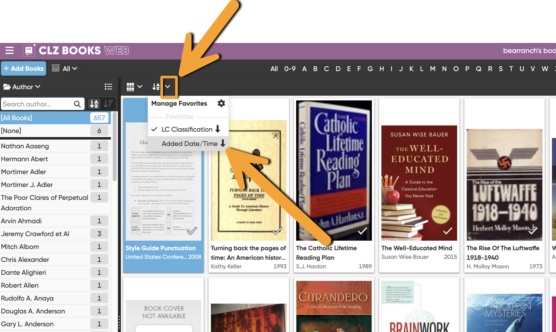 Also is there a way to sort the books by the date they were added to that I can quickly select those books and then batch add them all?