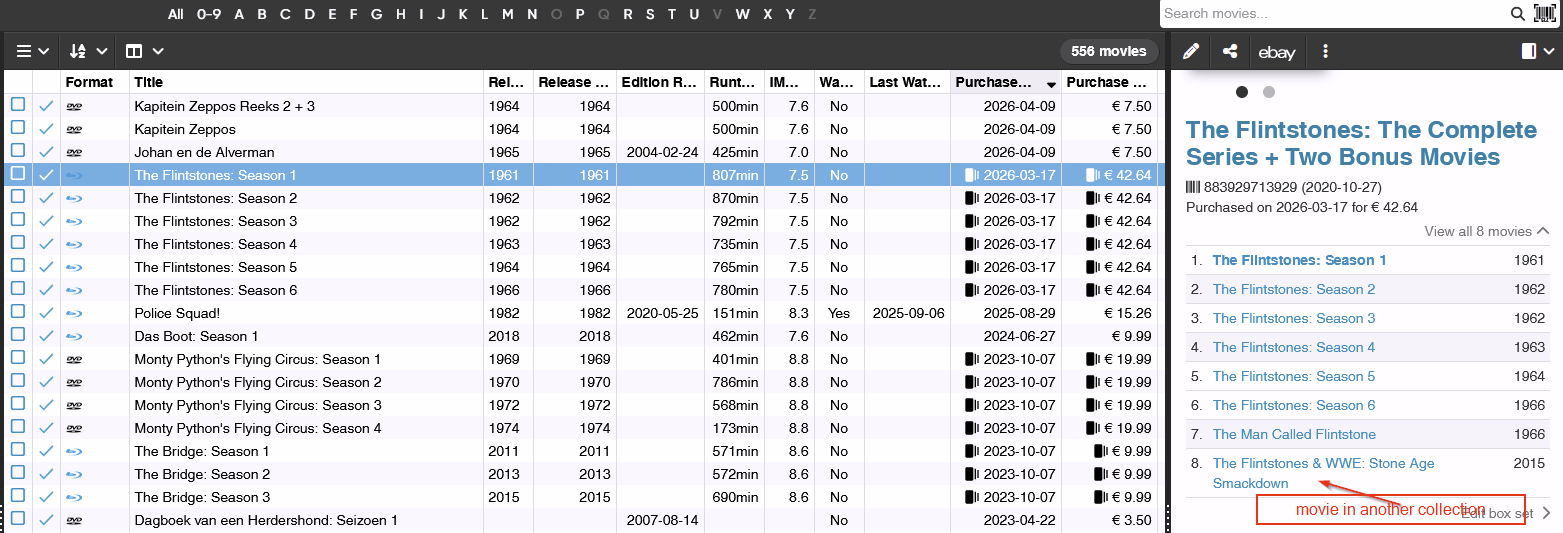 In very rare cases I have a boxset where some of the entries are in one collection, and some entries are in another collection.