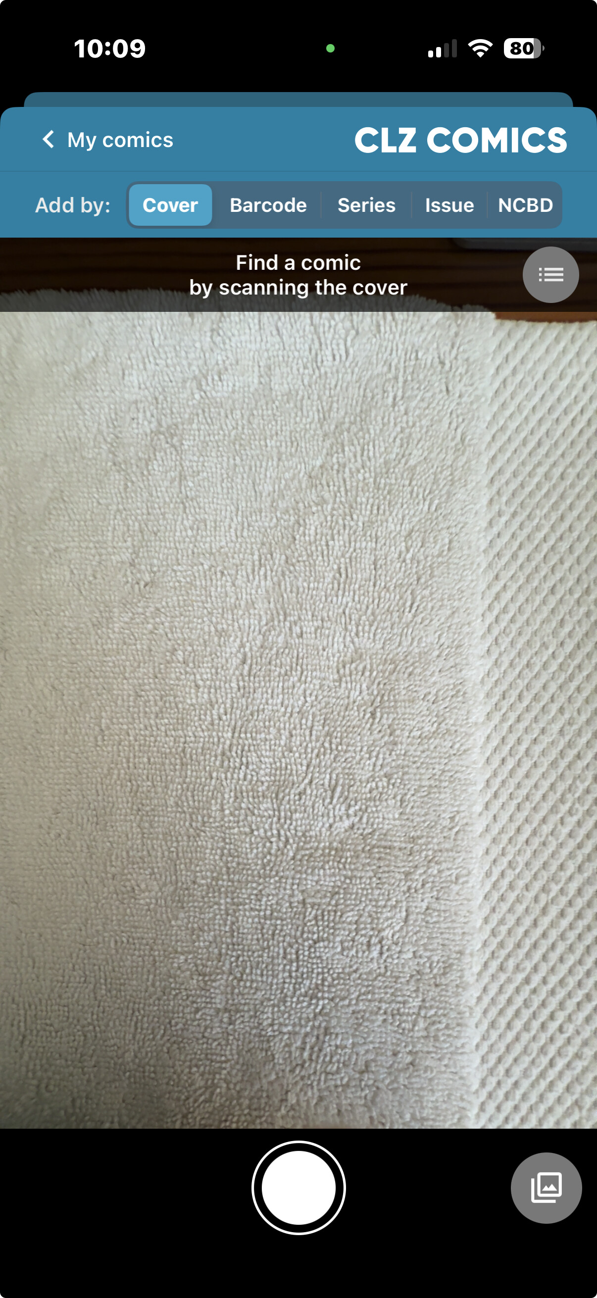 You can also, instead of taking a picture with our Add Comics screen, tap on the “image” icon, in that screen and just pick one from your camera roll… and then let it search that. Also, one by one.