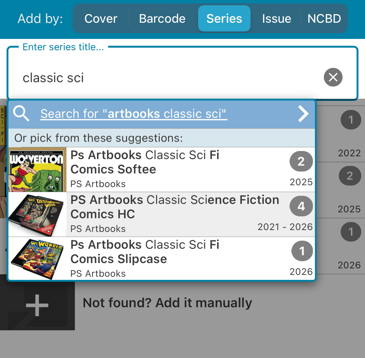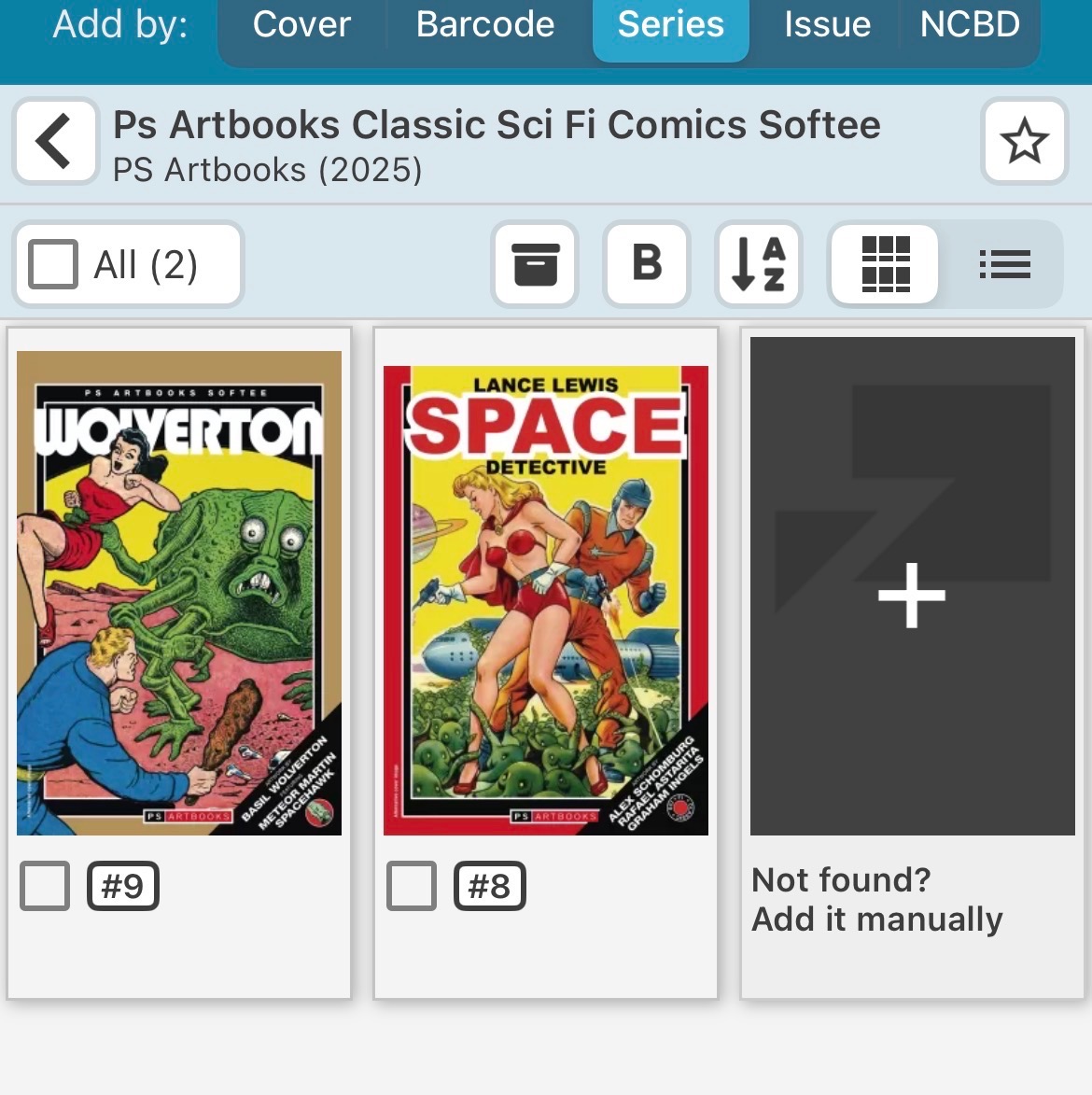 Note that there already exists a title in core for the hardcover edition called “Ps Artbooks Classic Sci-Fi Comics HC” that currently contains books #9 and #10 … and I have a request in to add #1.