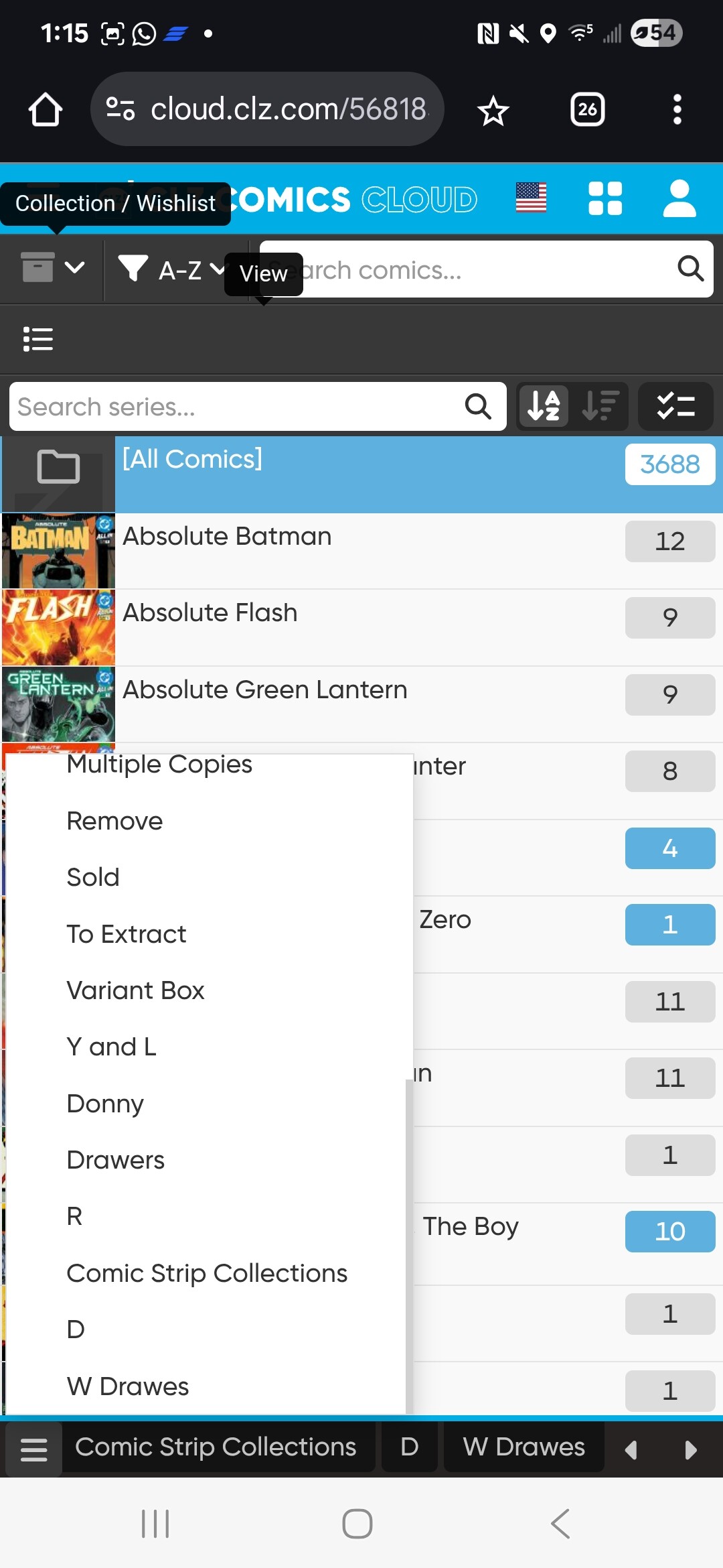 Is there a way to remove the collection tabs at the bottom of the CLZ Comics Cloud page? I used to sort differently but now a lot of mine are empty.