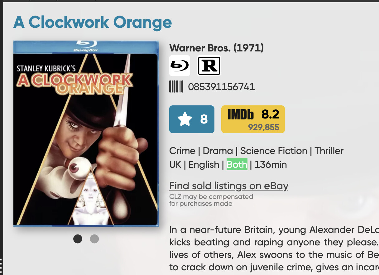 (3) “both” appears on the template without a label between country and running time, and makes no sense unless you know the exact layout of the template. Also “both” could mean that I have a b&w and a colorized version of the movie, or it could mean that part of the movie is in color and part in b&w (eg Wizard of Oz).