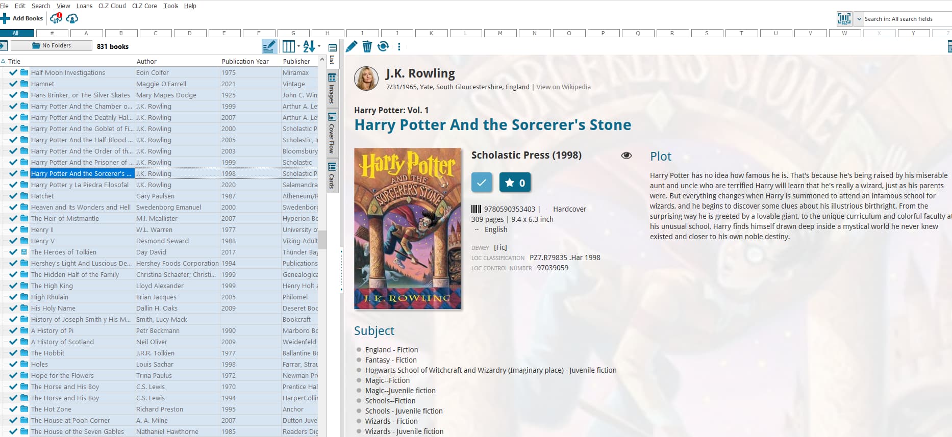 Then top right will be your books (or books from the author you selected), and bottom right will be the details of the book selected.