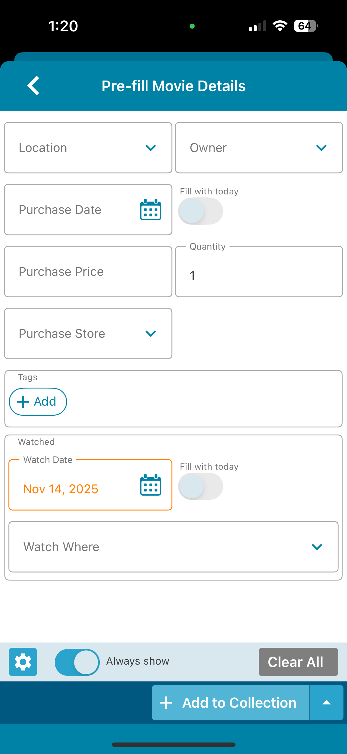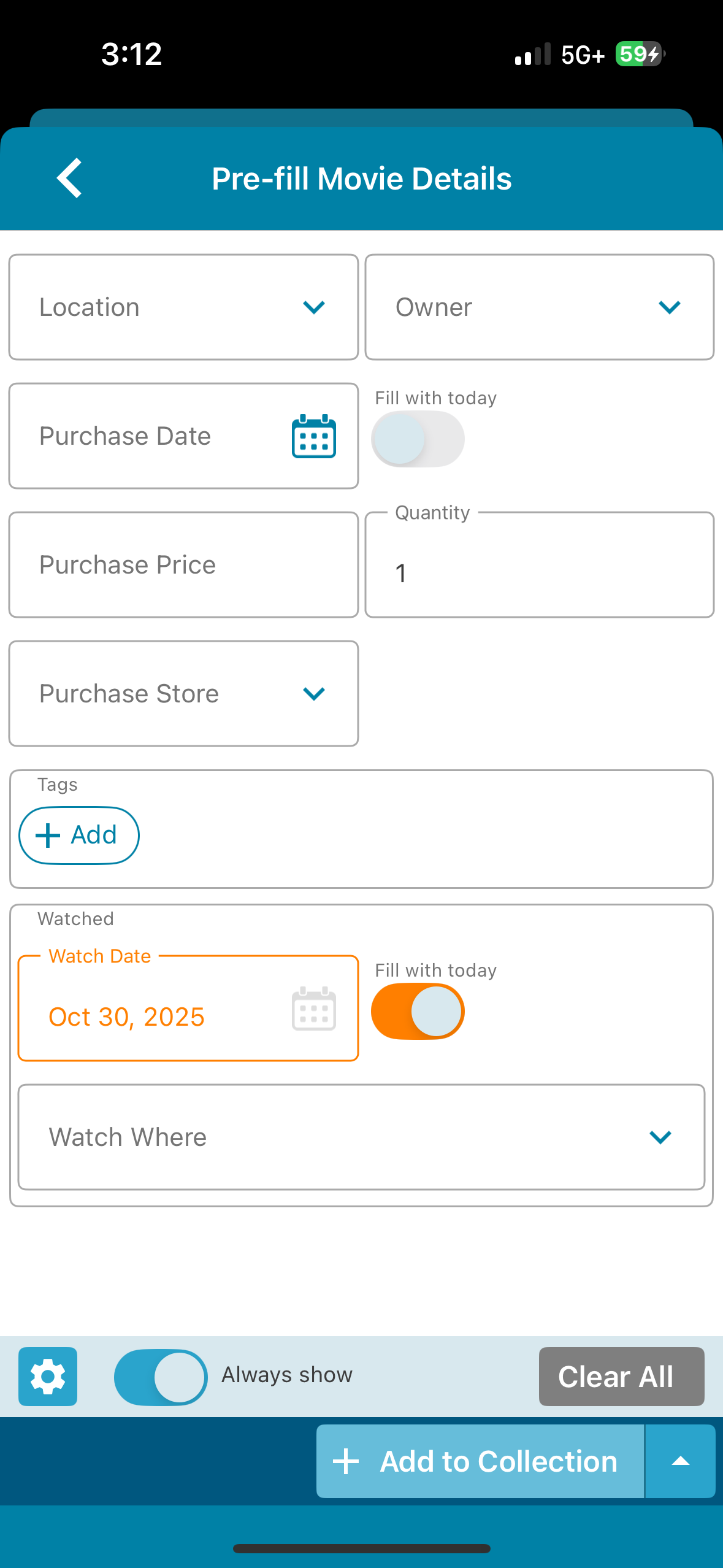 Well, it works in that when I set the watched to today’s date on the pre-fill screen it will show as watched in my list. However, it is populating the date and setting it as watched even if I de-select the toggle on the pre-fill screen ![]()