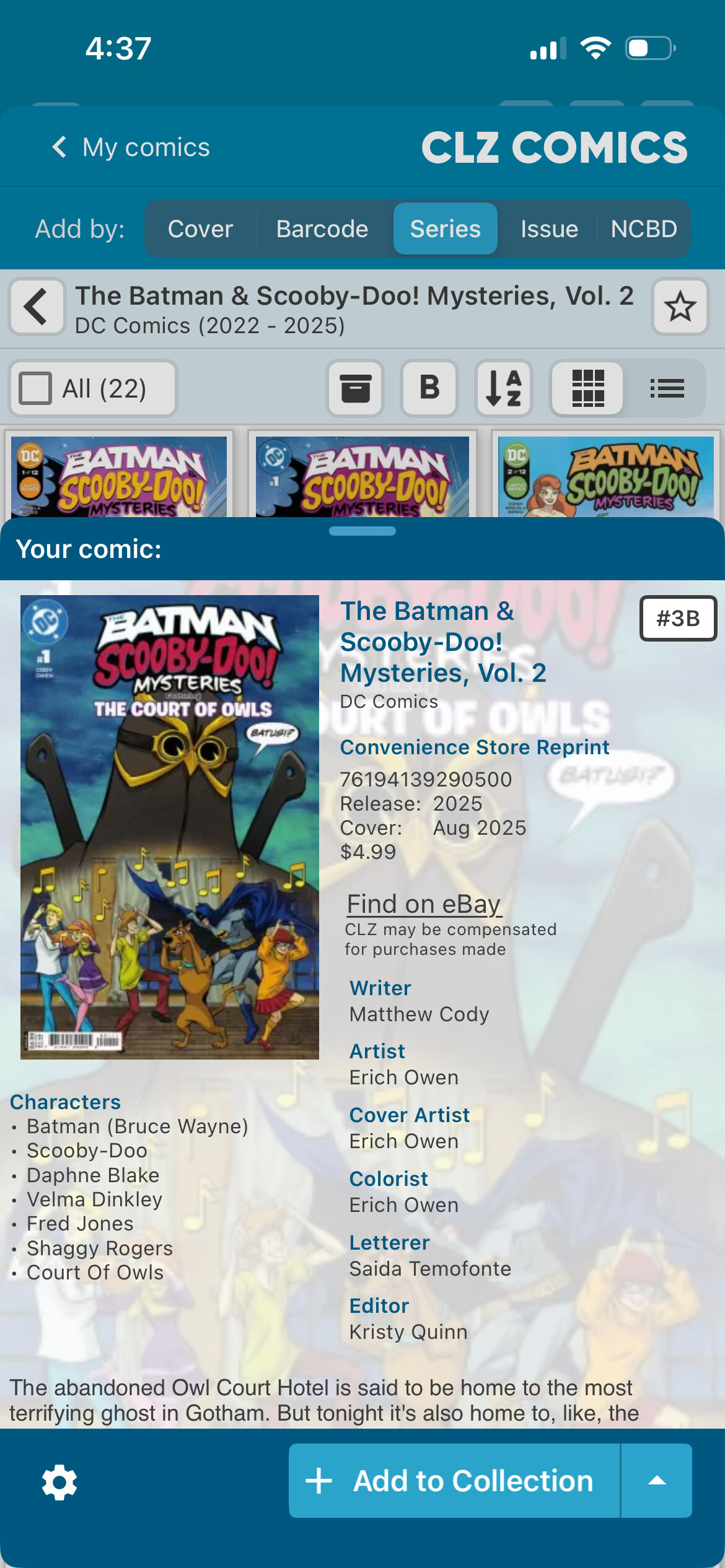 Barcode for Batman/Scooby 3B should be 76194139290500111 (it’s missing the final digits)