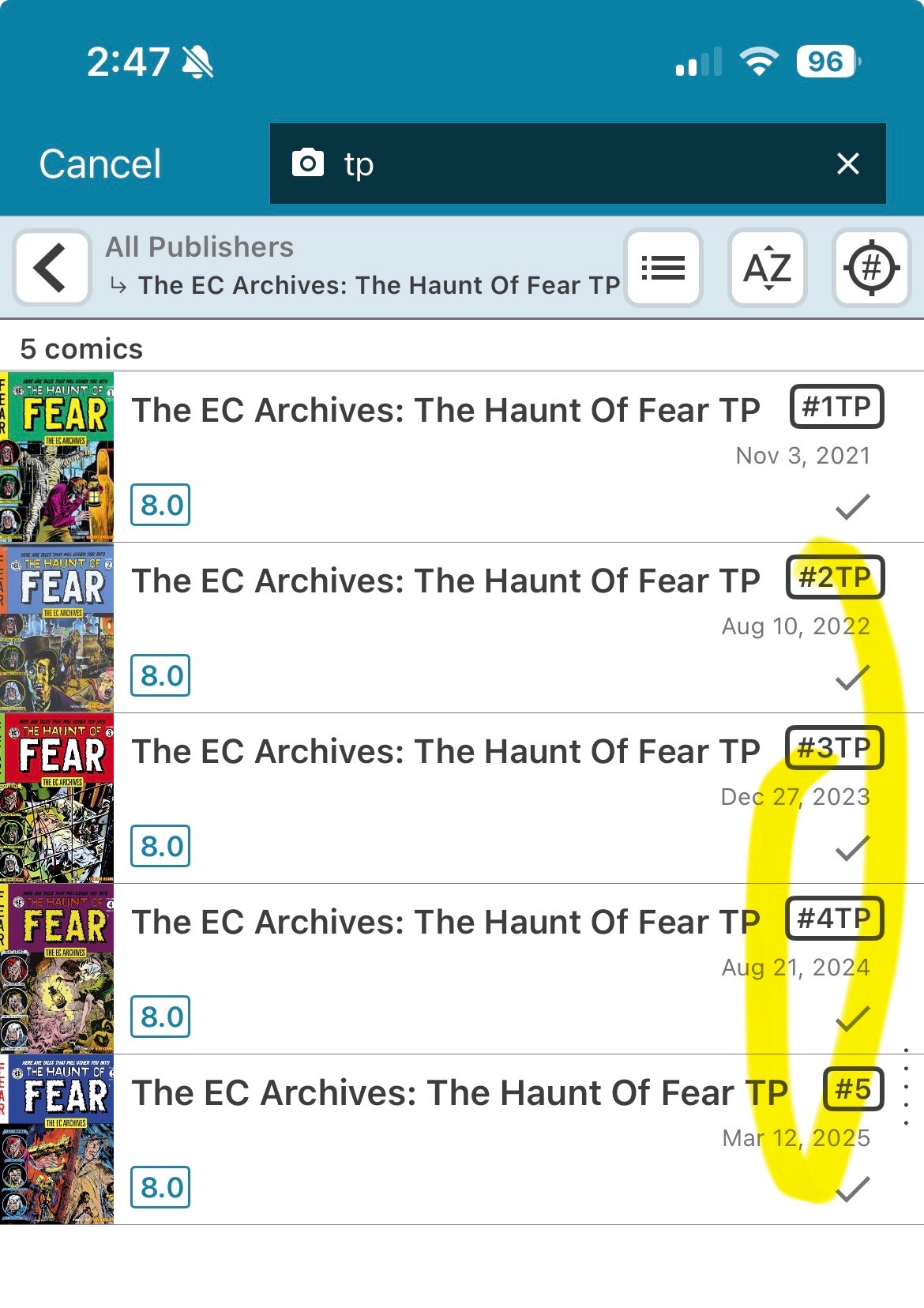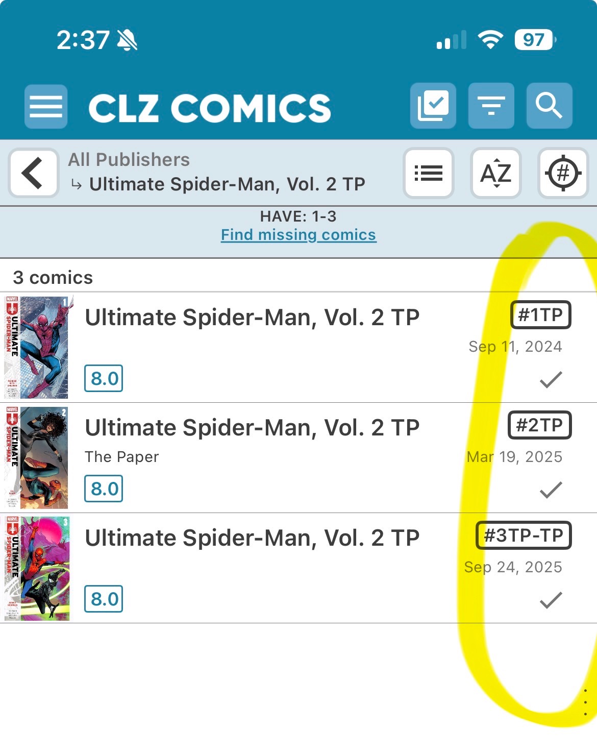 Hi. Can you please adopt and apply a standard for the numbering of the following TP titles? I do have them all and a happy to help in any way needed. Thanks