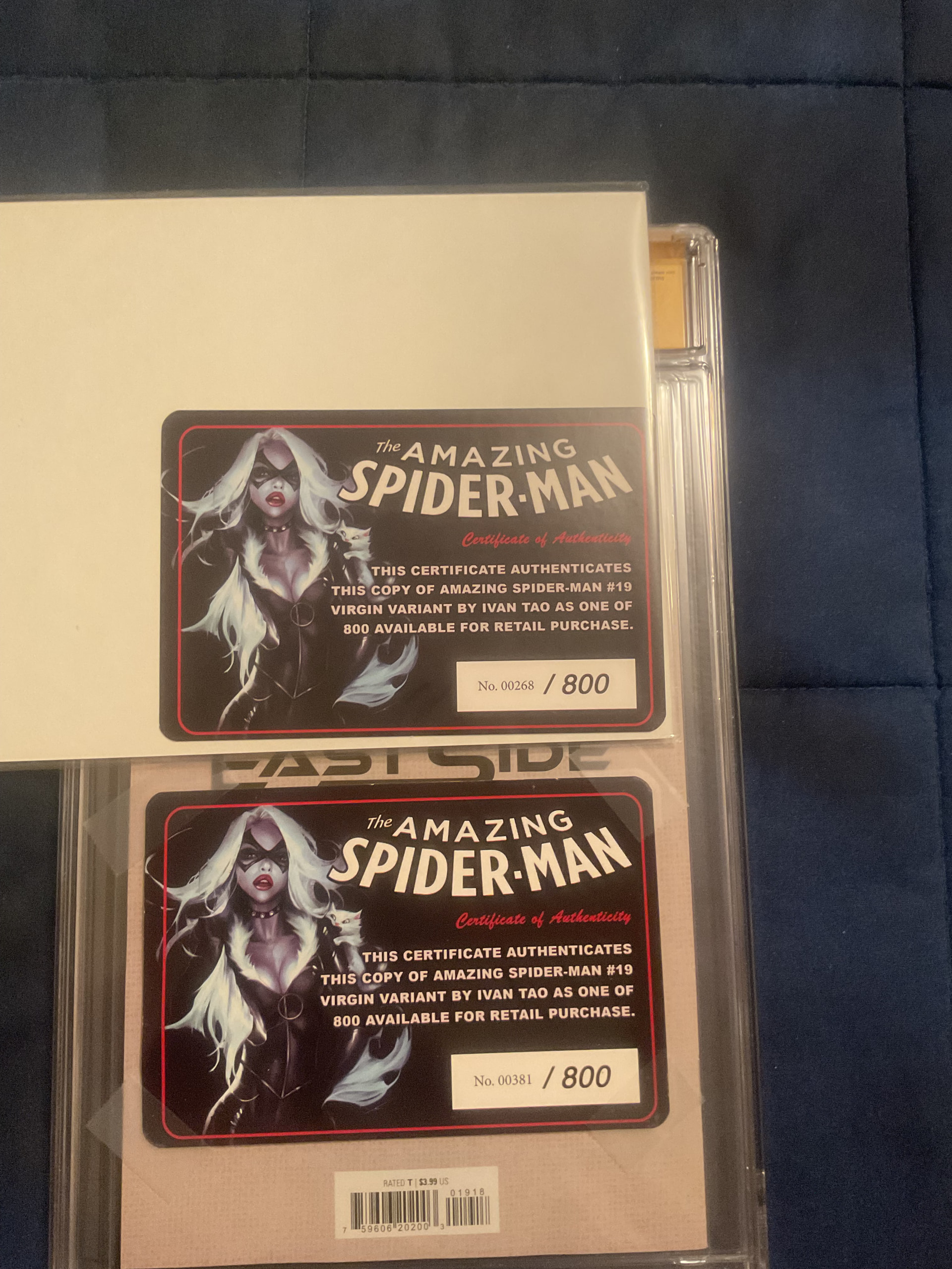 ASM Volume 6 Issue 19H (Ivan Tao Virgin Variant) is limited to 800 copies. See photo below with a couple of CoA’s.
