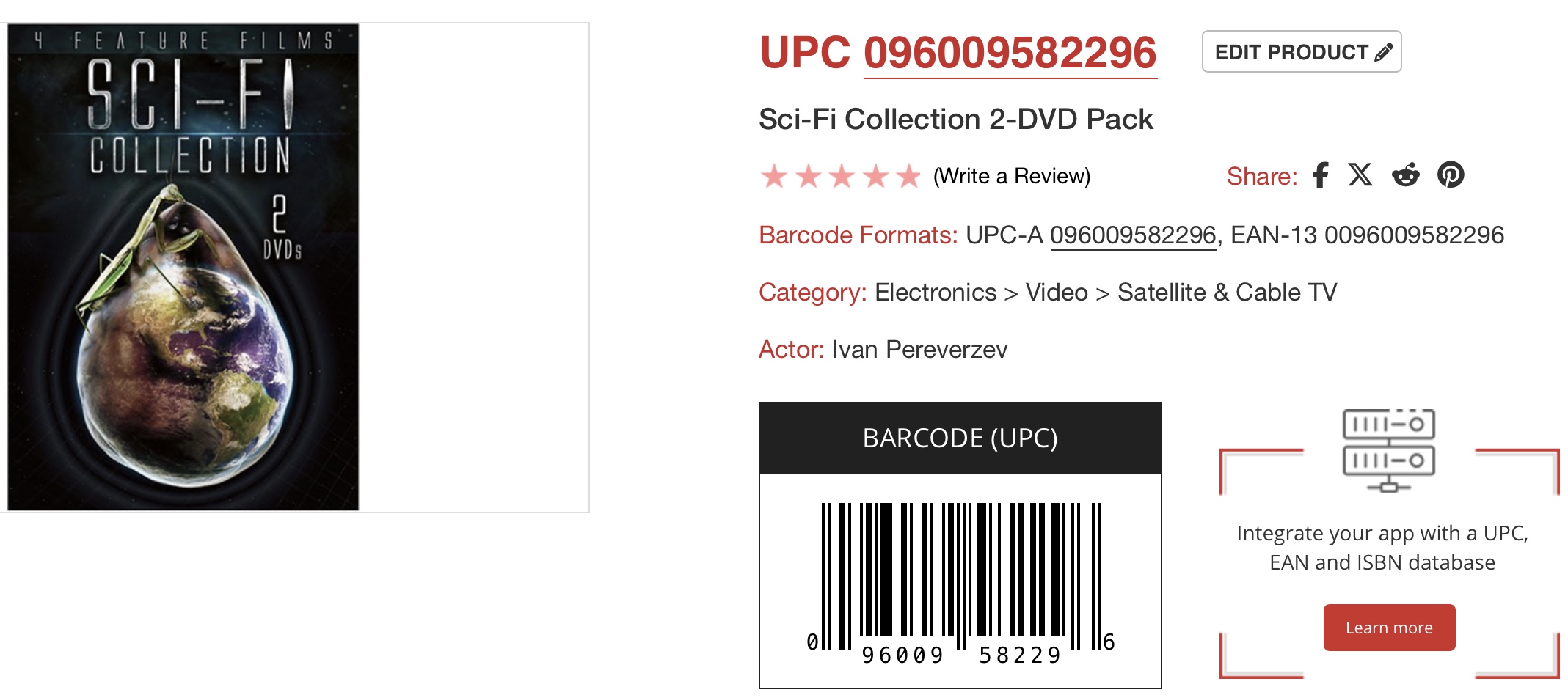 Your barcode search for 096009582296 comes up with only one movie in this box set (Atom Age Vampire) However your cover is correct and the box set is titled “Sci-Fi Collection”. The four movies should be: