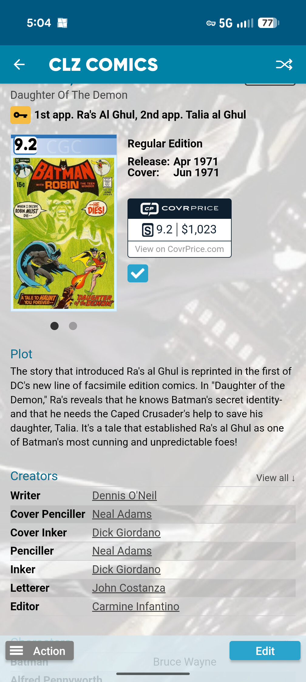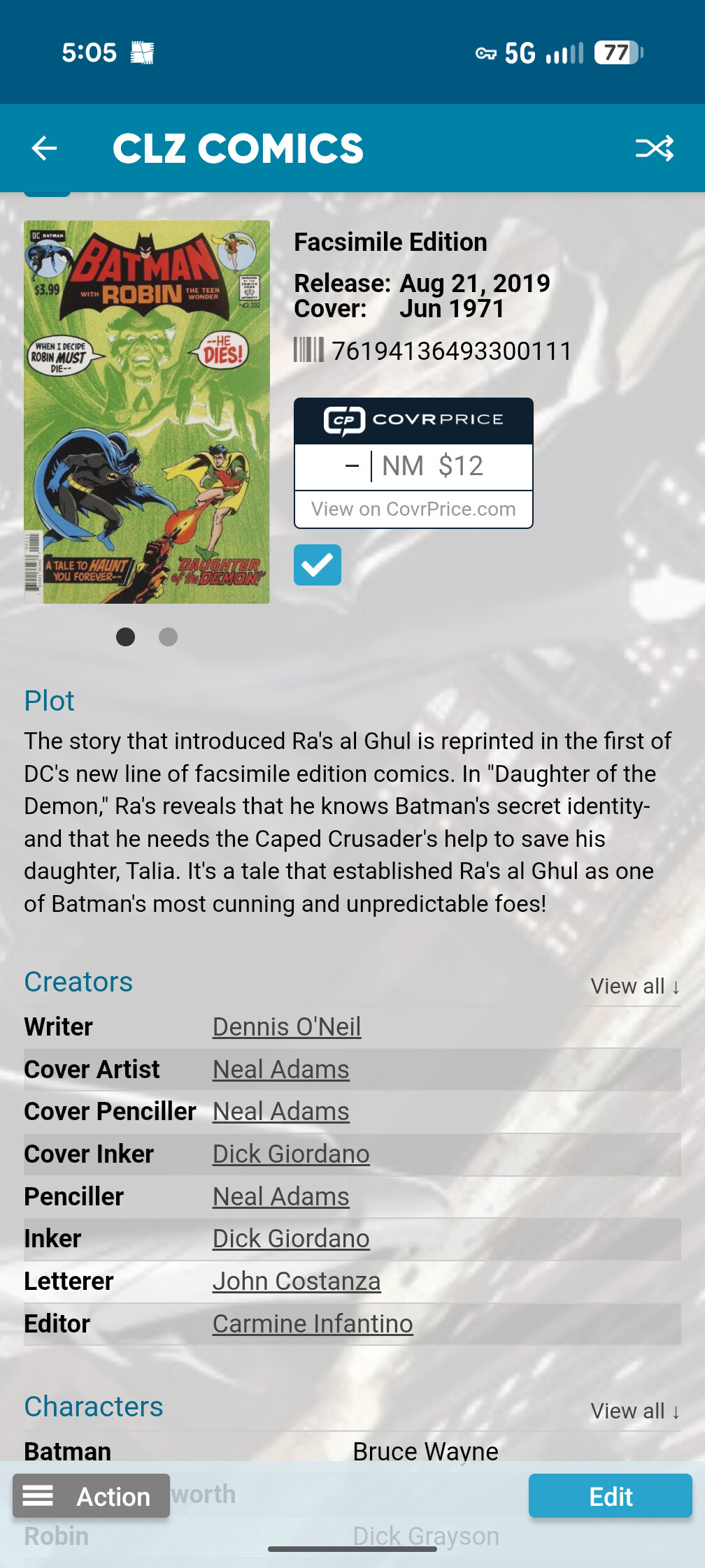 The facsimile shows Neal Adams as the cover artist but not the regular issue. Can this be corrected so they both show Neal Adams as cover artist?