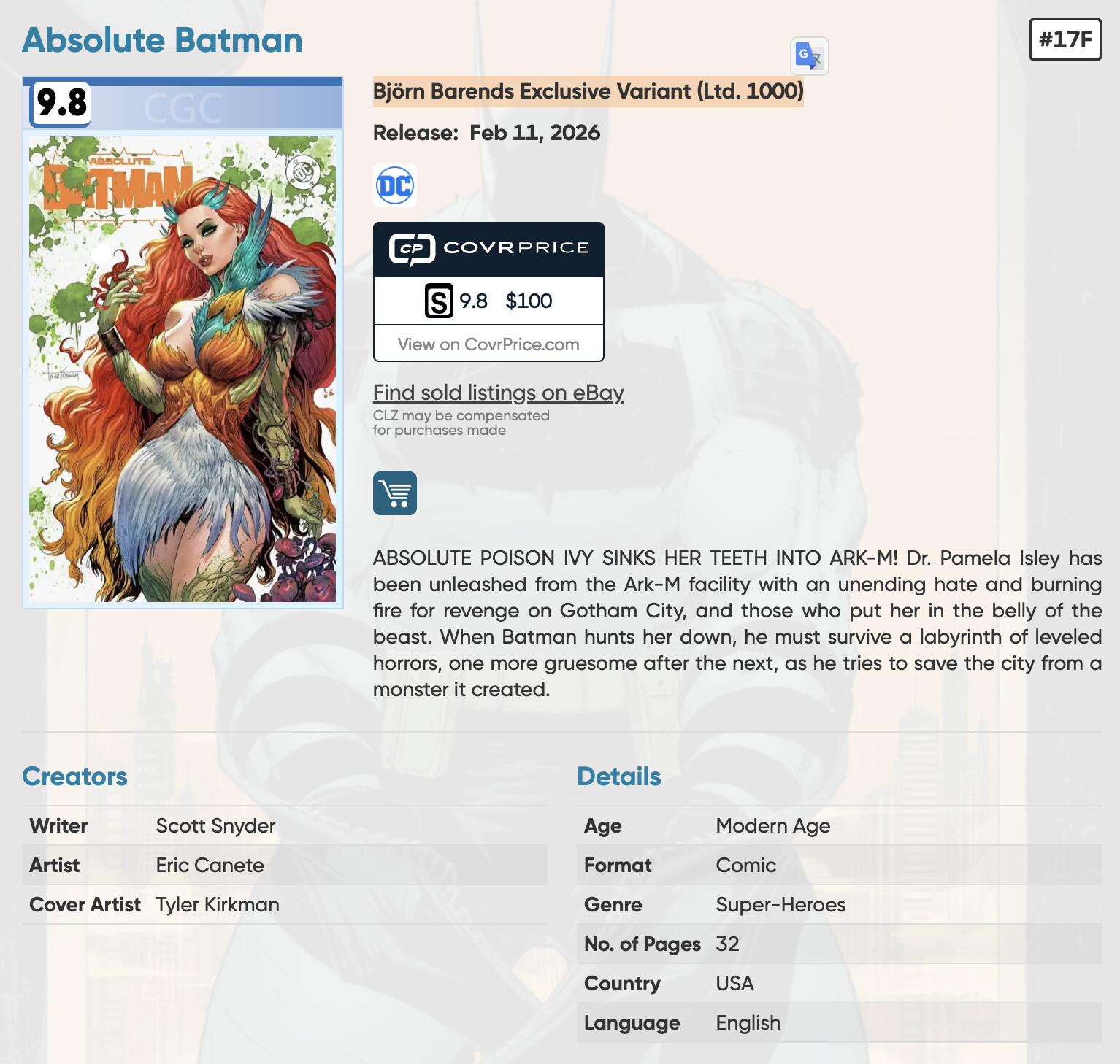 ERROR: Absolute Batman #17F Björn Barends Exclusive Variant (Ltd. 1000)