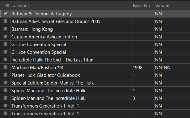 - Machine Man/Bastion '98: Has been renamed to “Machine Man Annual”. I’d advice removing from your database and adding as new from core.