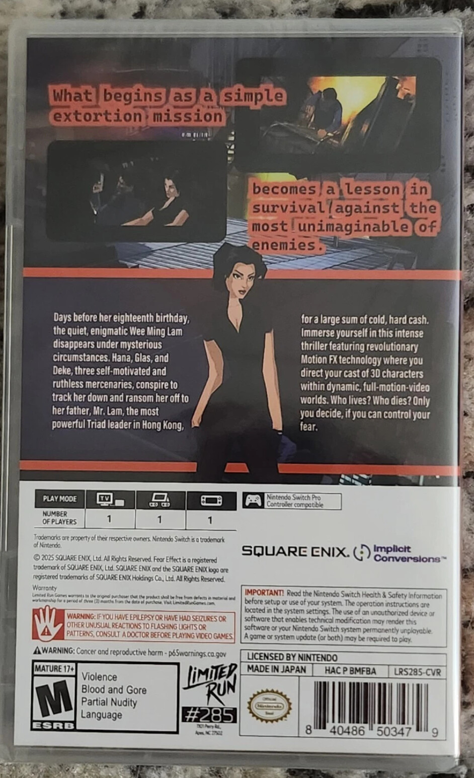 So I was lucky enough to pick up Fear Effect on Switch recently. There are two variations of this.