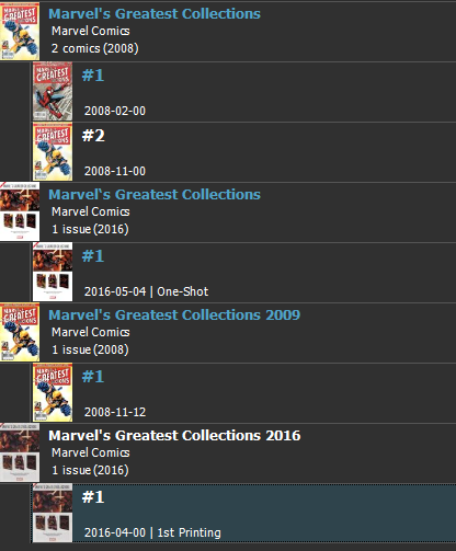 The Marvel‘s Greatest Collections #1 is a duplicate for Marvel’s Greatest Collections 2016 #1