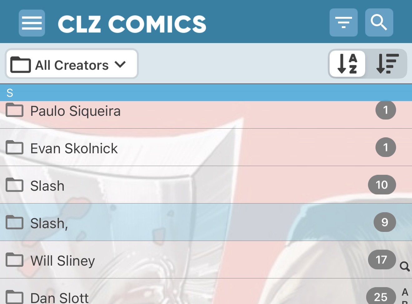 If you press and hold on the comic, you will see the Action menu appear in the lower right corner. Choose “Update from Core” and tap Update. That should replace the creators and characters.