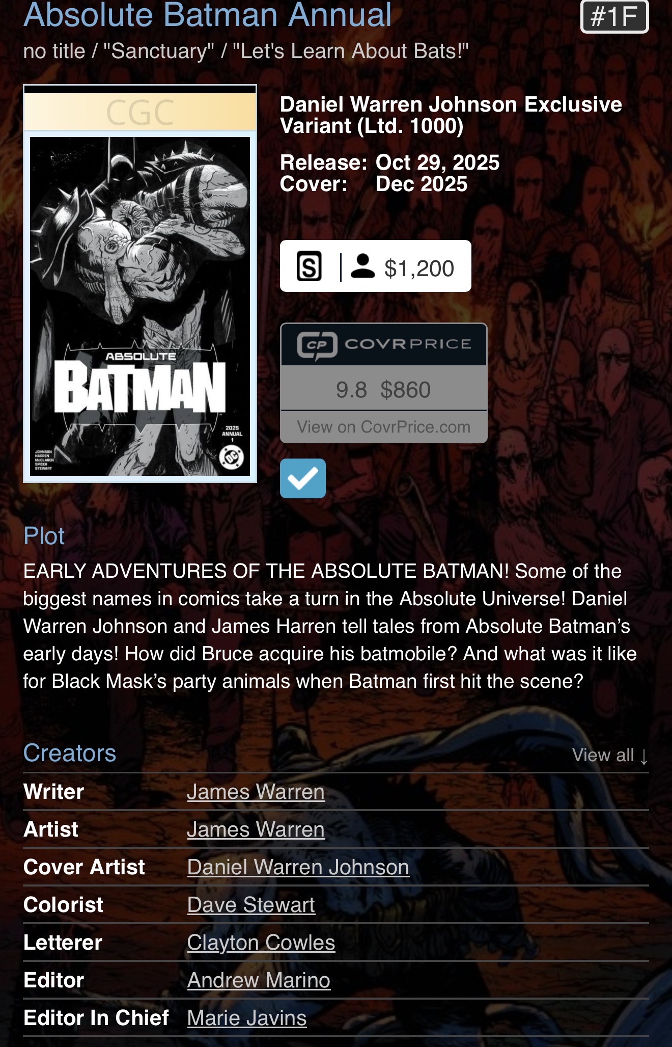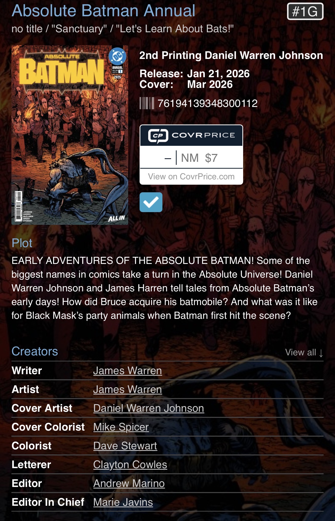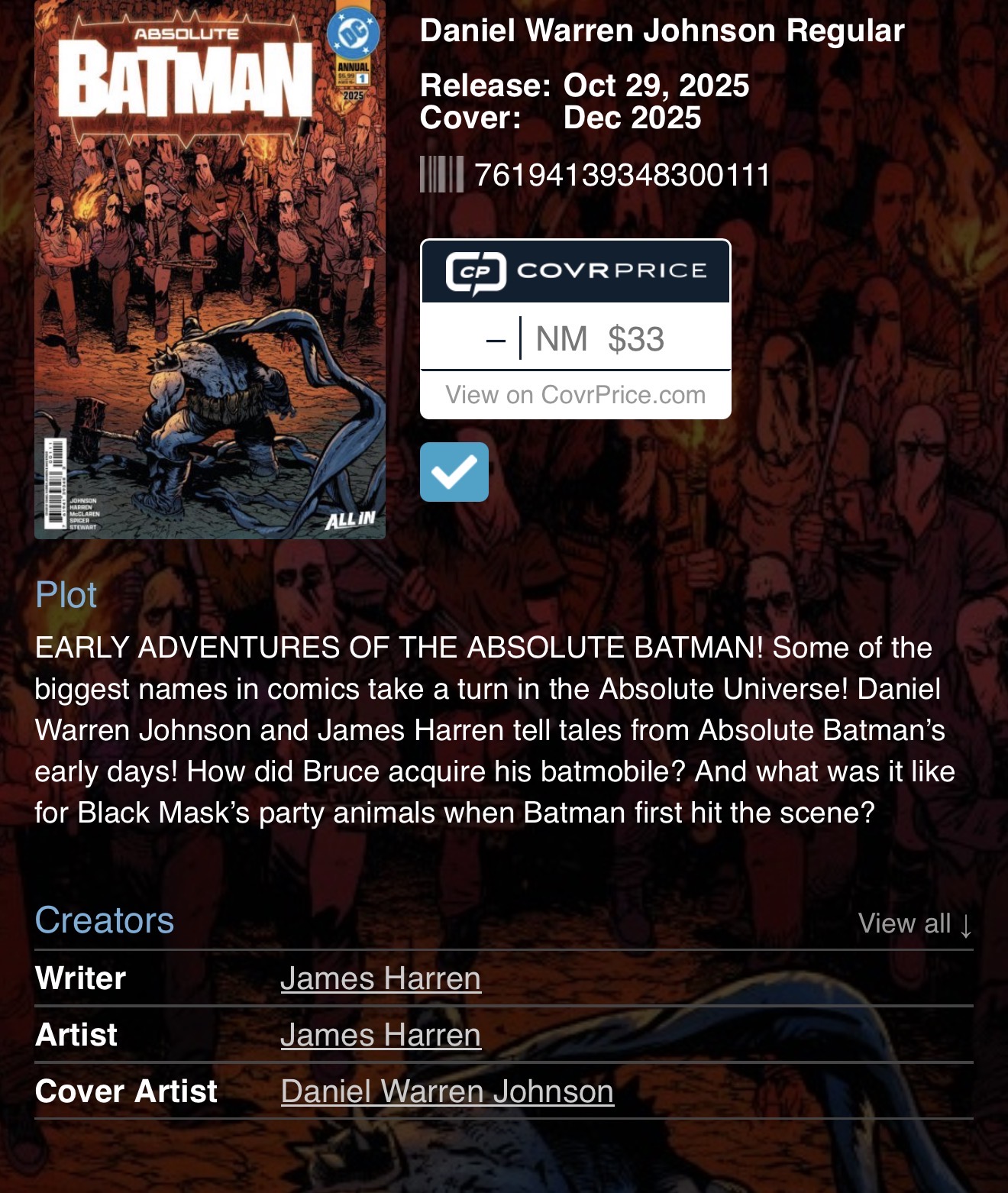 I just checked it’s still hasn’t changedevery absolute batman annual from the Daniel Warren Jonhsson Felix exclusive still says Warren instead of Harren