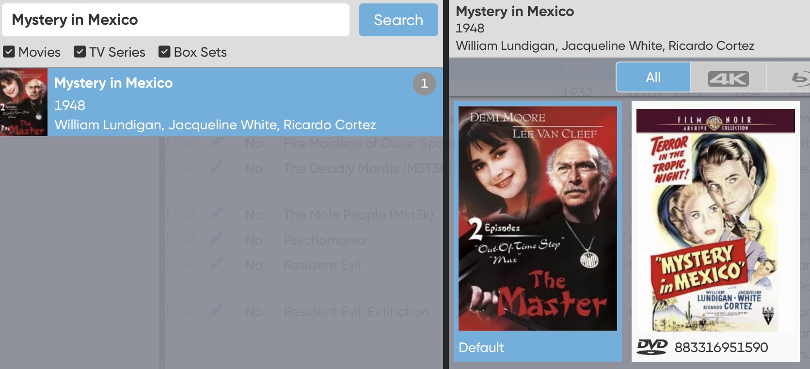 Your default image for Mystery in Mexico (1948) is wrong. You show: