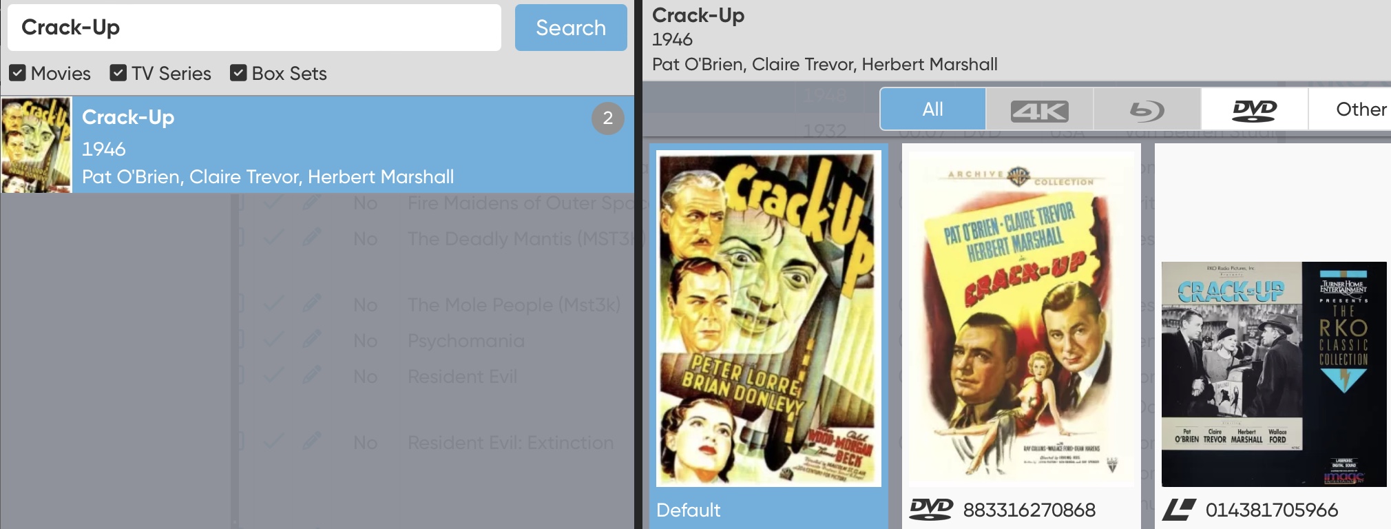 Your default image for Crack-Up (1946) shows one for Crack-Up (1936)