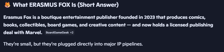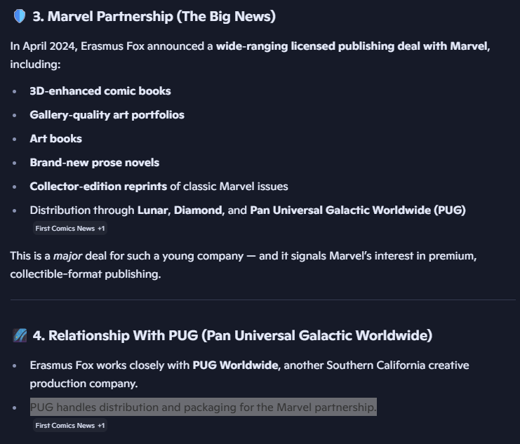 @CLZ_Justin Marvel IS the publisher. They use a joint-venture CO-OP created by Fox called ERASMUS (the part of the picture I gave you that you conveniently clipped out) as the clearing house for joint publishing when they engage 3rd parties to do work on their titles that they don’t have expertise for in house (like 3D, silk screens, horizontal spines, etc.)