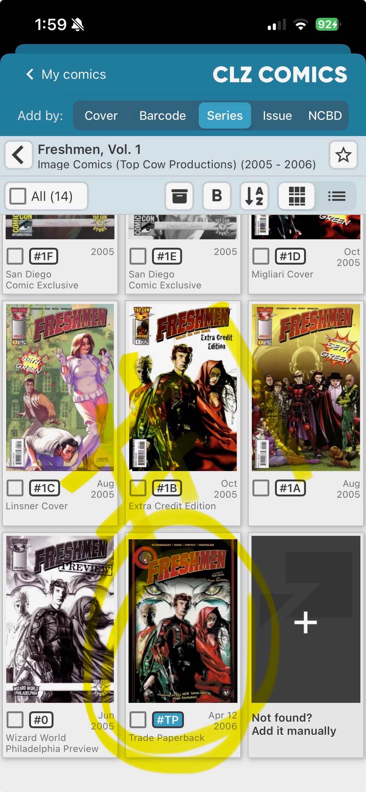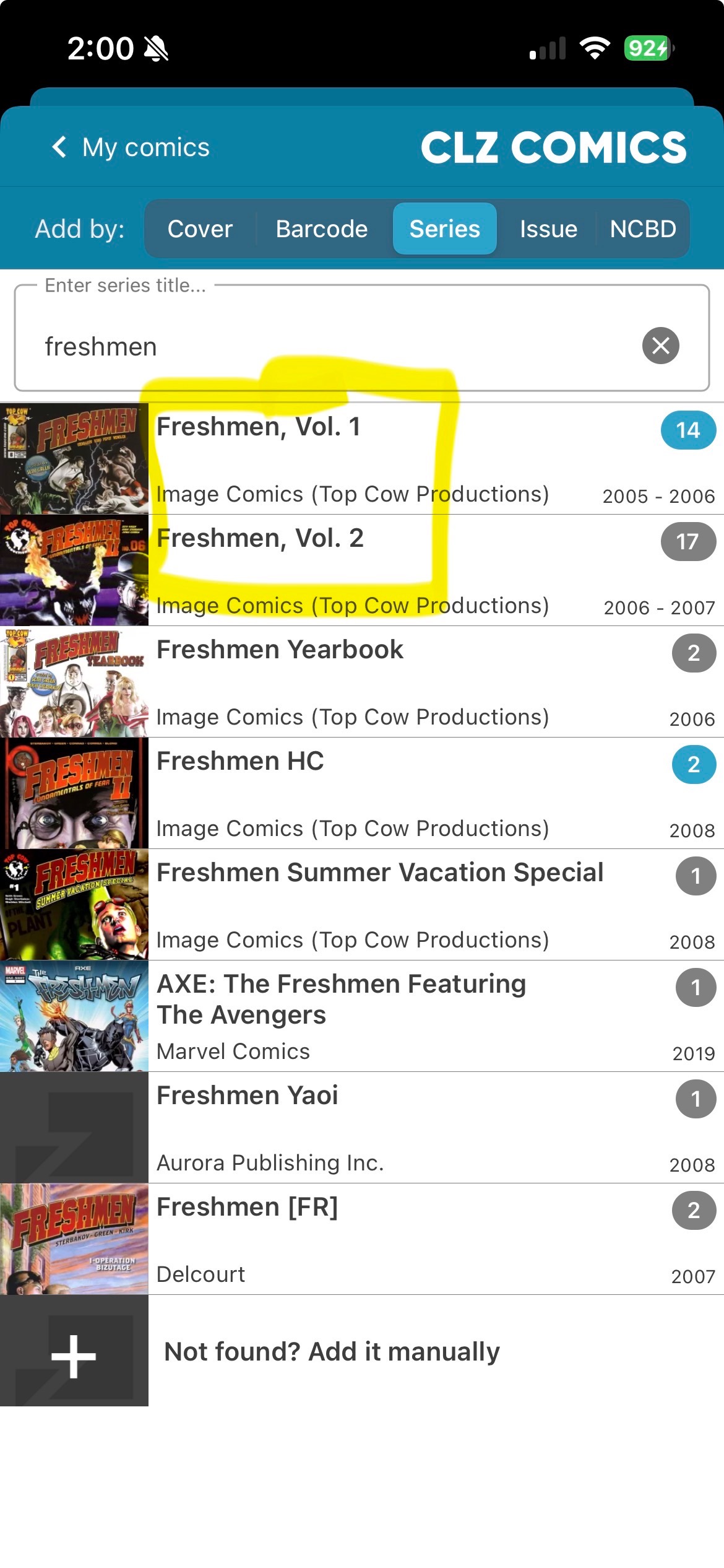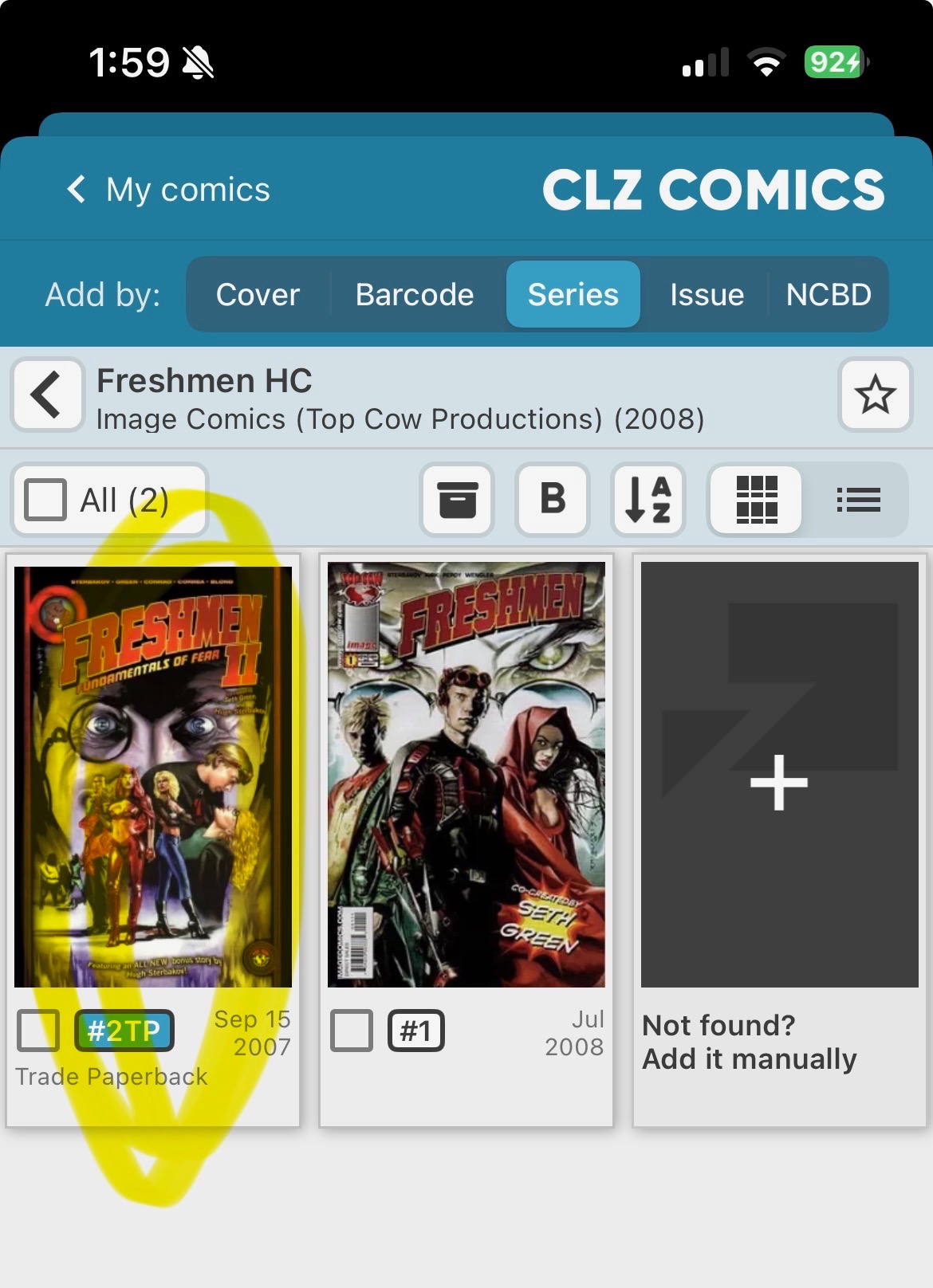 Hi. There are 2 titles in core correctly for these 2 series: ‘Freshmen, Vol. 1’ and ‘Freshmen, Vol. 2’ but the collected trades for them are not correct in core.