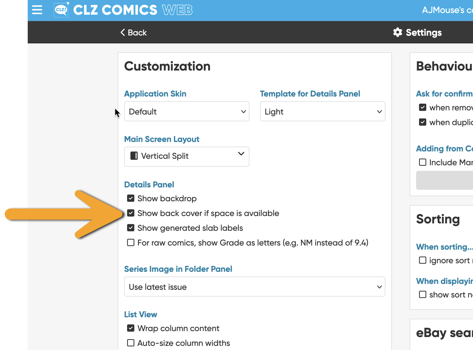We’ve just released a small update for CLZ Web where you can now disable the automatic showing of back cover (and always use the “toggle”).