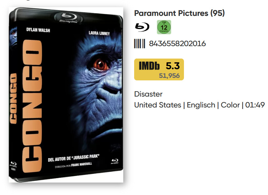 When displaying my collection in Horizontal Cards view, I noticed “strange” numbers next to the thumbnails. For example the number 95 next to the film Congo. As it turns out, these numbers reference the Studio (eg 95 stands for Paramount Pictures). That information in numeric form seems irrelevant to me.