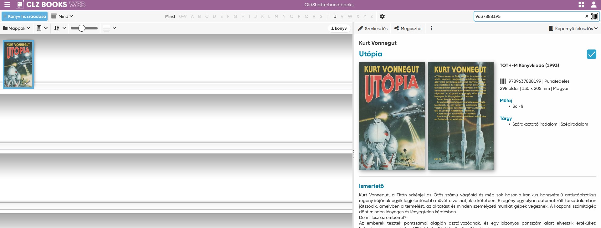 I can support that somehow ISBN 10 should be appear or at least store in the core, web version too. Lot of old books don’t have barcode but have ISBN. So you can not use the barcode scanner, and if you enter the ISBN to the search bar (search in my books) on CLZ Web you don’t get results because you convert the real ISBN 10 to ISBN 13 and your search bar miss the possibility to search part of the word. Or miss I something? As ISBN the unique identifier for books I think it is an important part that can be searchable.
