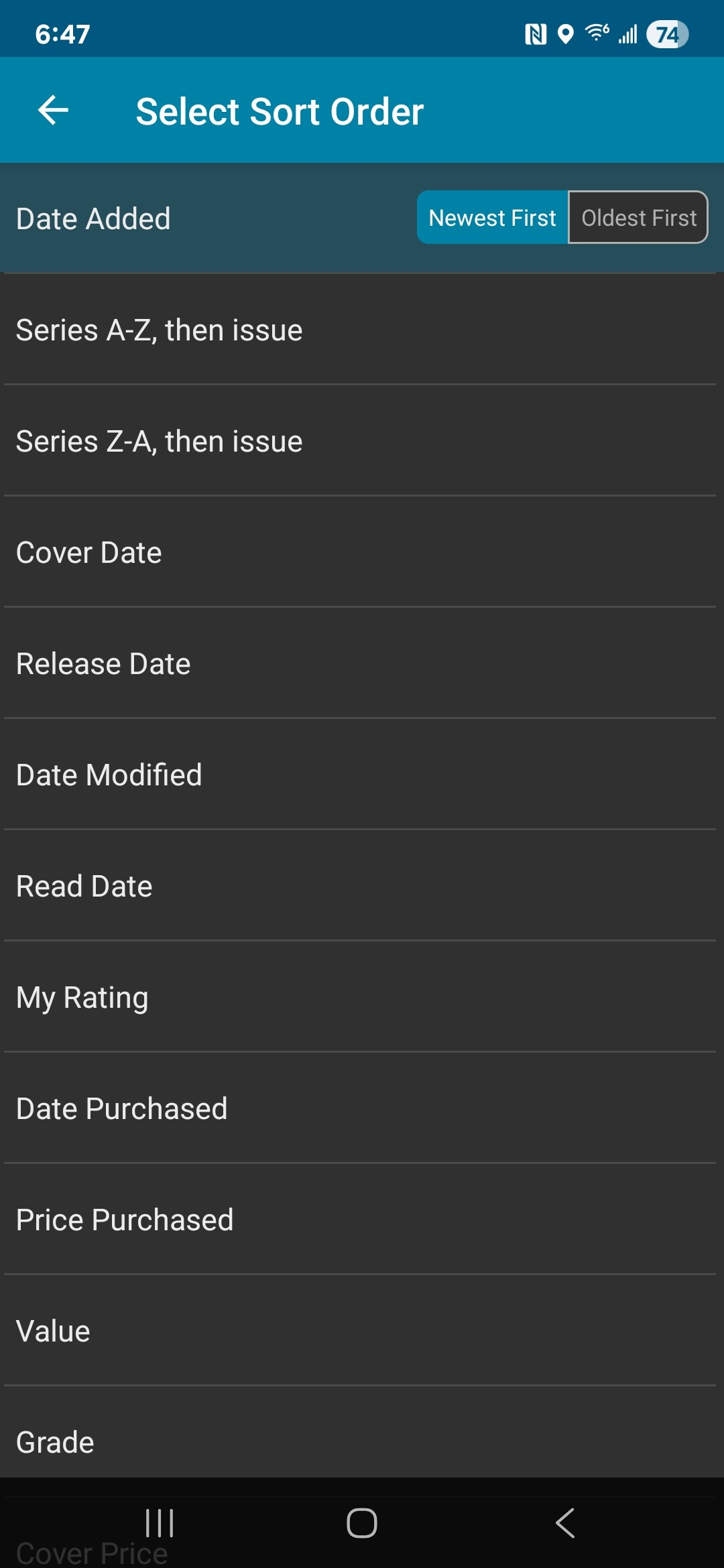 Please note that sorting on Added date really means the date it was added into the app - regardless of collection status.