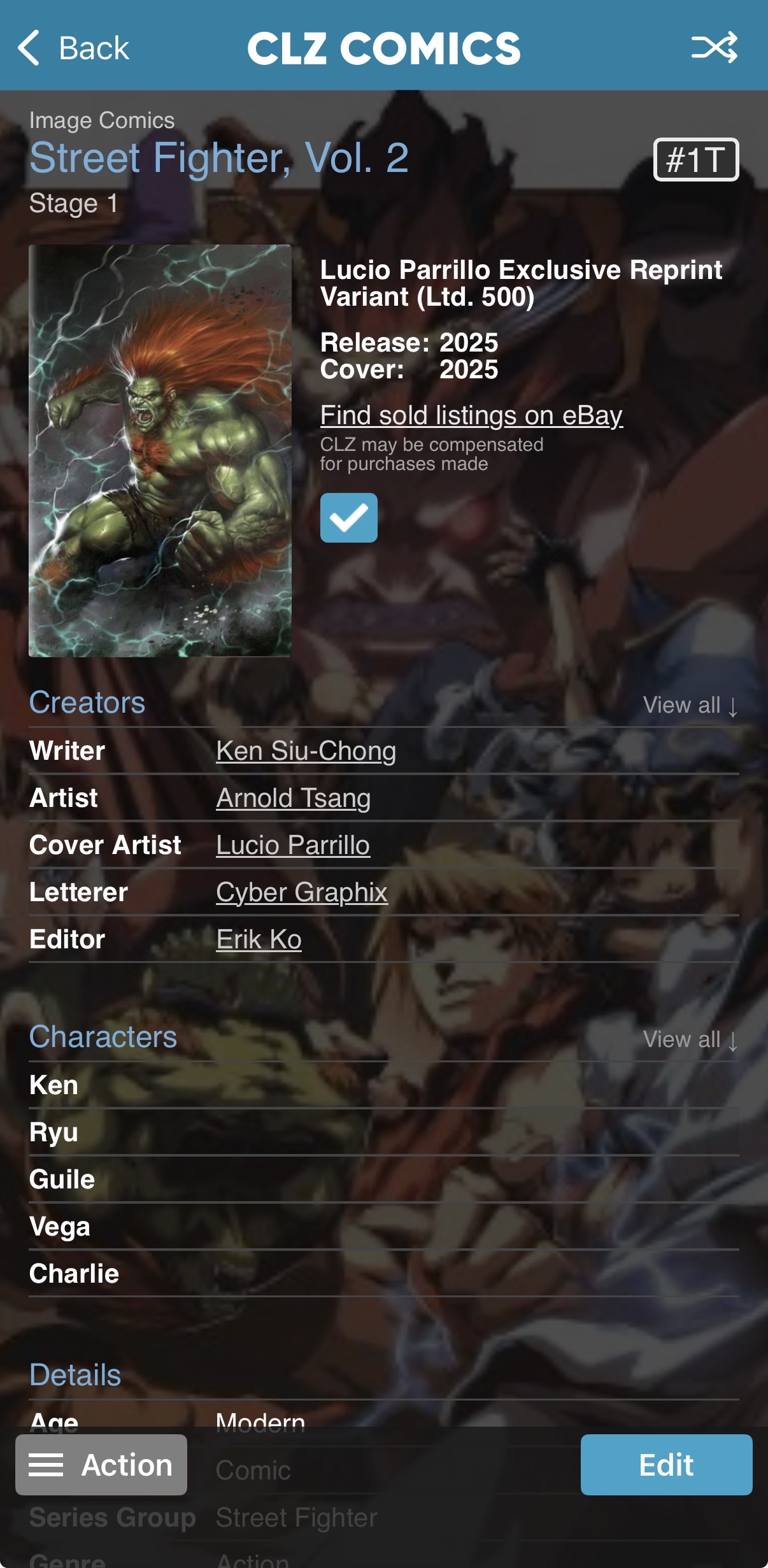 And their (Carnivore Comics) page doesn’t differentiate between V1 or V2… Street Fighter #1 - BLANKA RAGE - Lucio Parrillo – Carnivore Comics