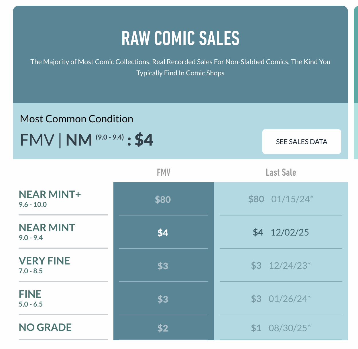 The grade makes a huge difference. For most moderns, if your books’ grade is borderline, you’ll be better off classifying it as an NM (9.4) because there’s a LOT more sales data at that level for moderns than there is for the NM+ (9.6 and up) bucket.
