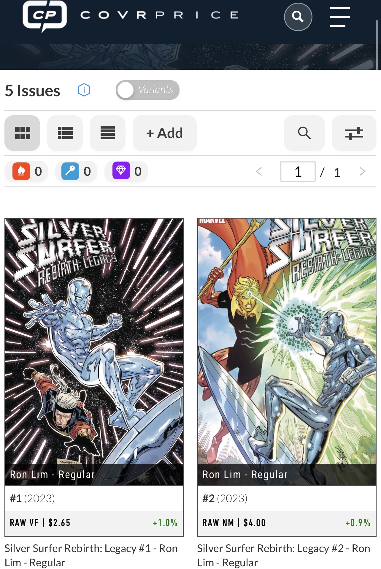 This is what I am seeing on the CovrPrice site: