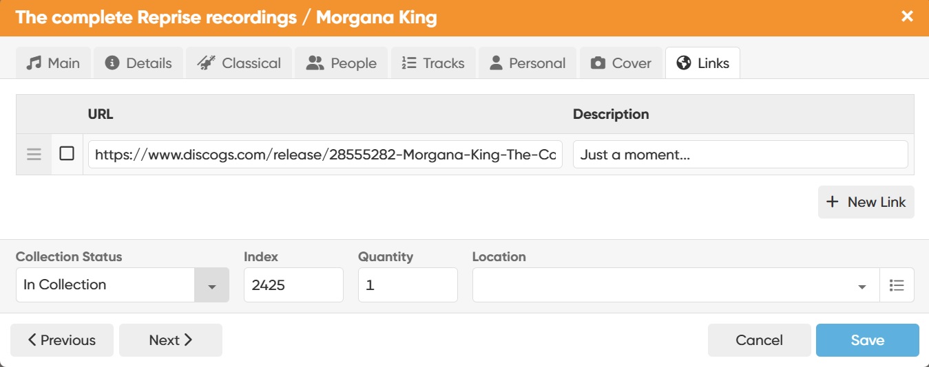 The URL gets parsed from Discogs - but it seems the parser needs to go past a protection thing on Discogs, which then delivers the “Just a moment…” description.